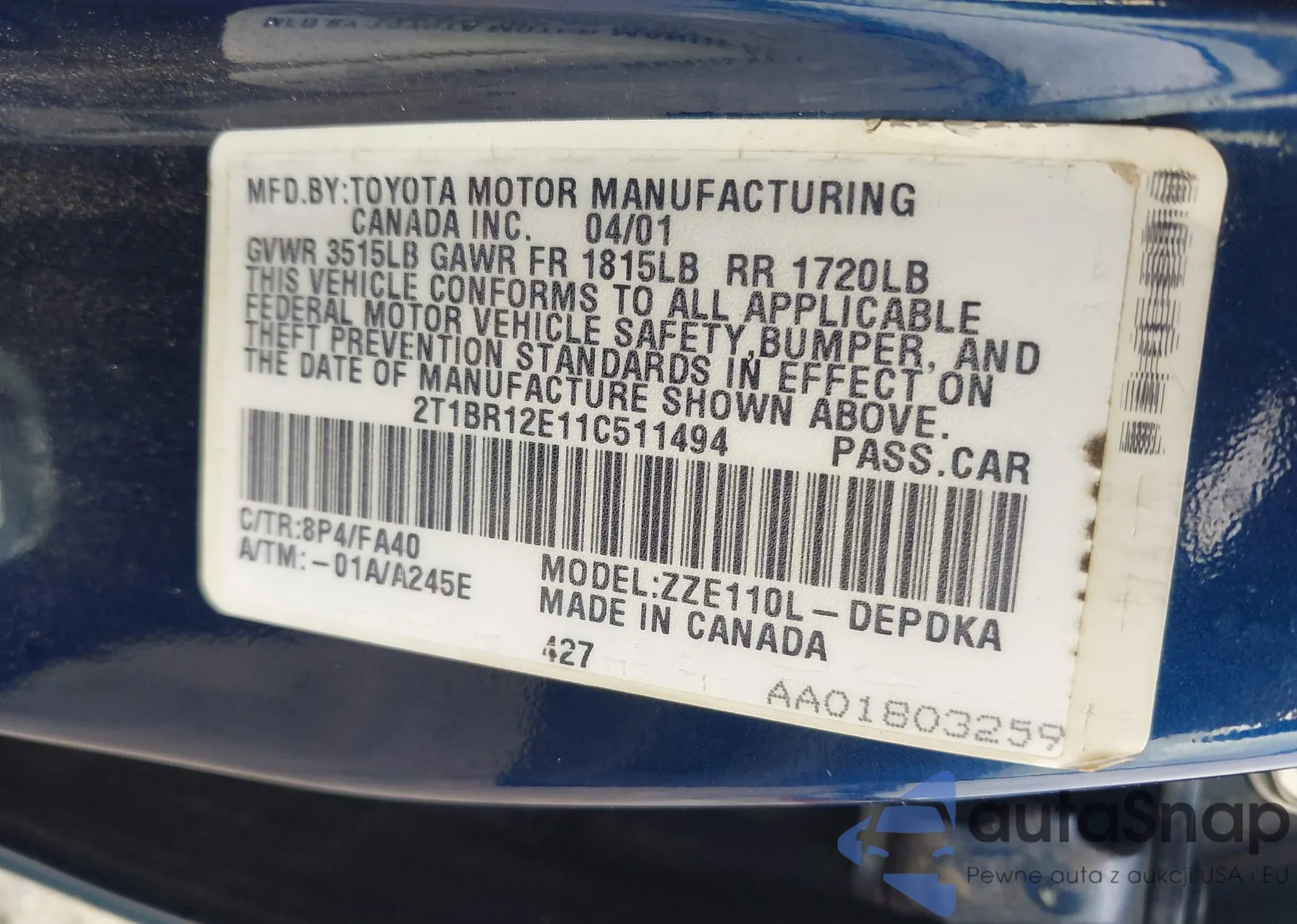 • VIN 2T1BR32E66C571208