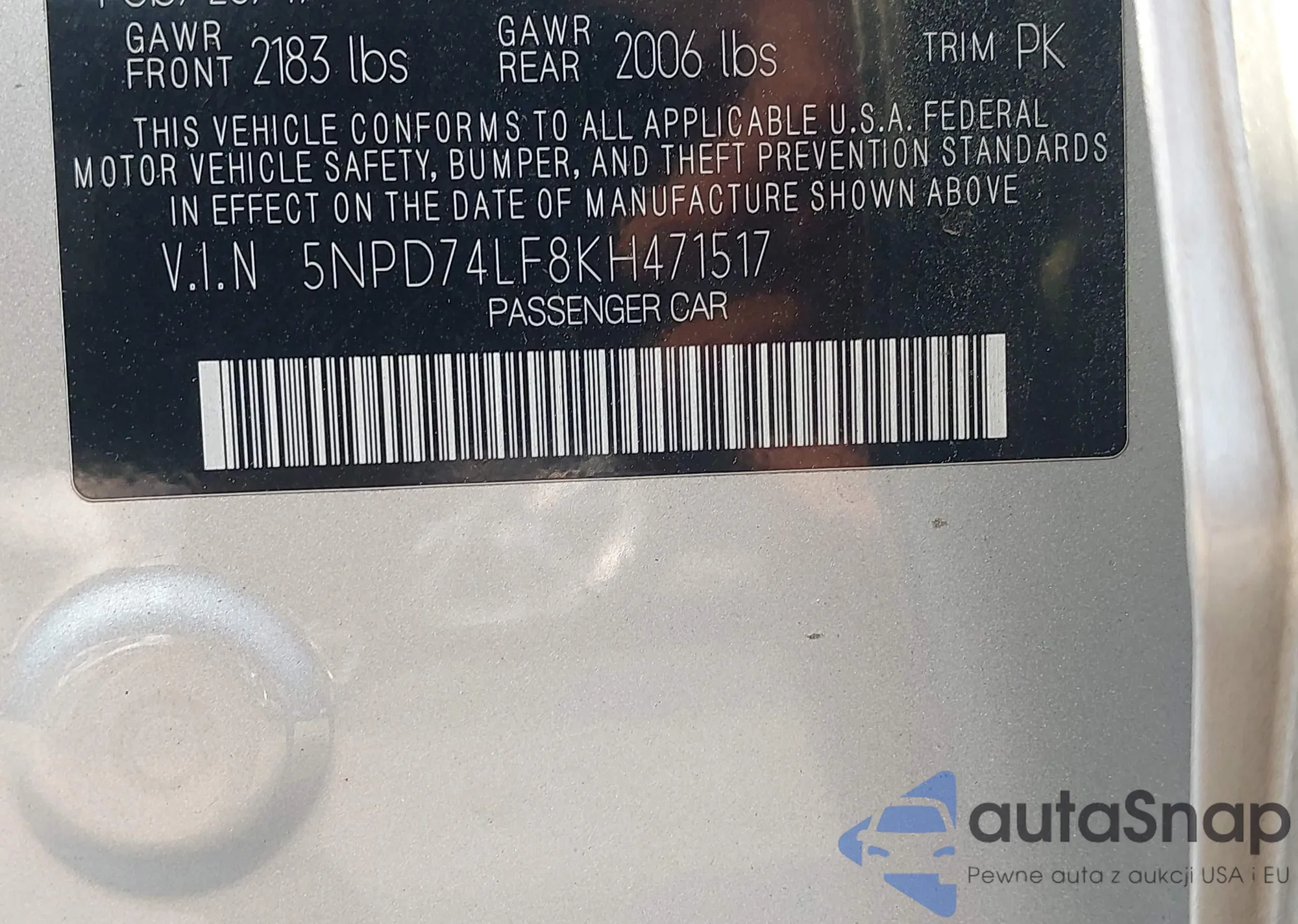 • VIN 5NPD74LF8KH471517
