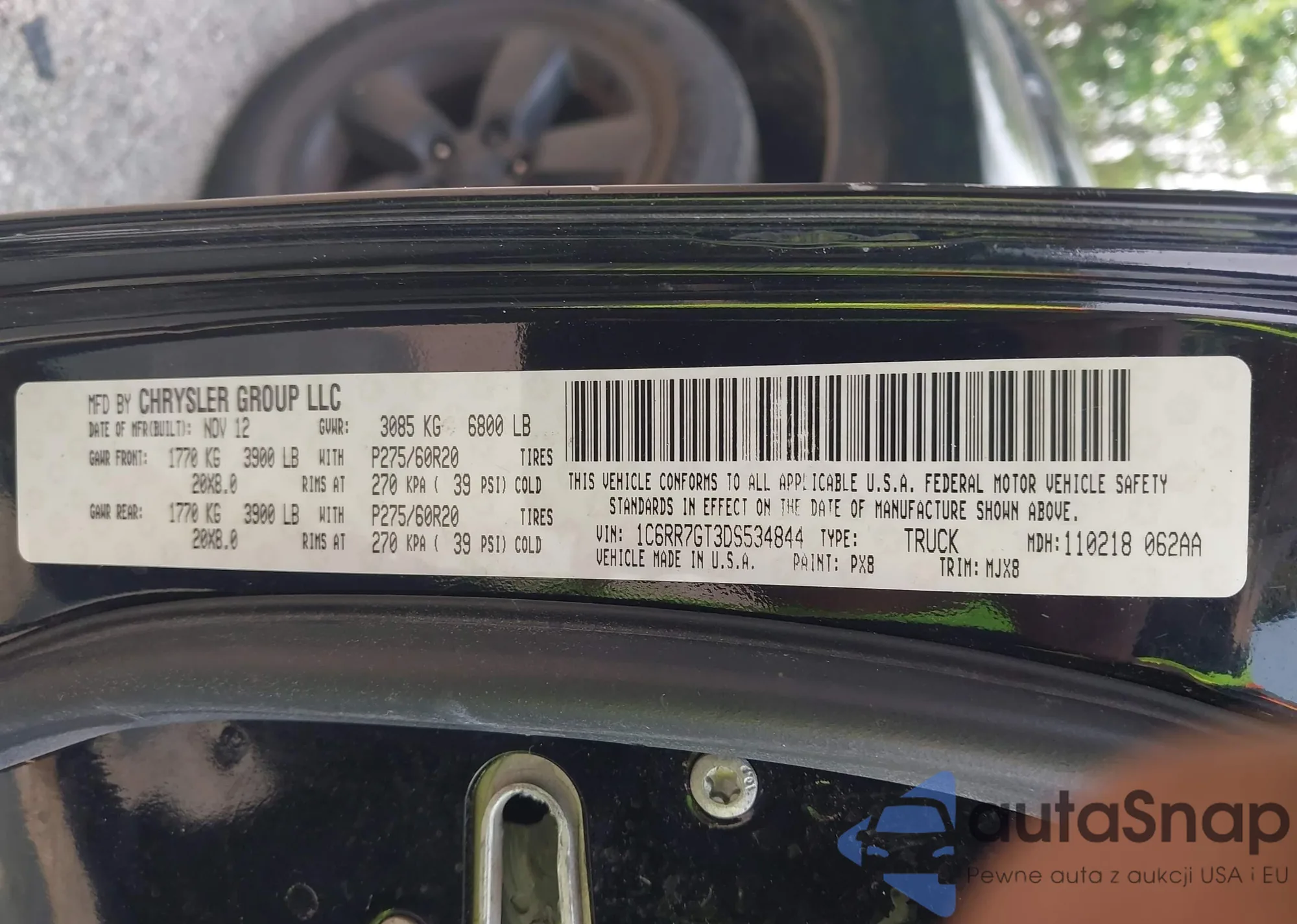 • VIN 1C6RR7GT3DS534844