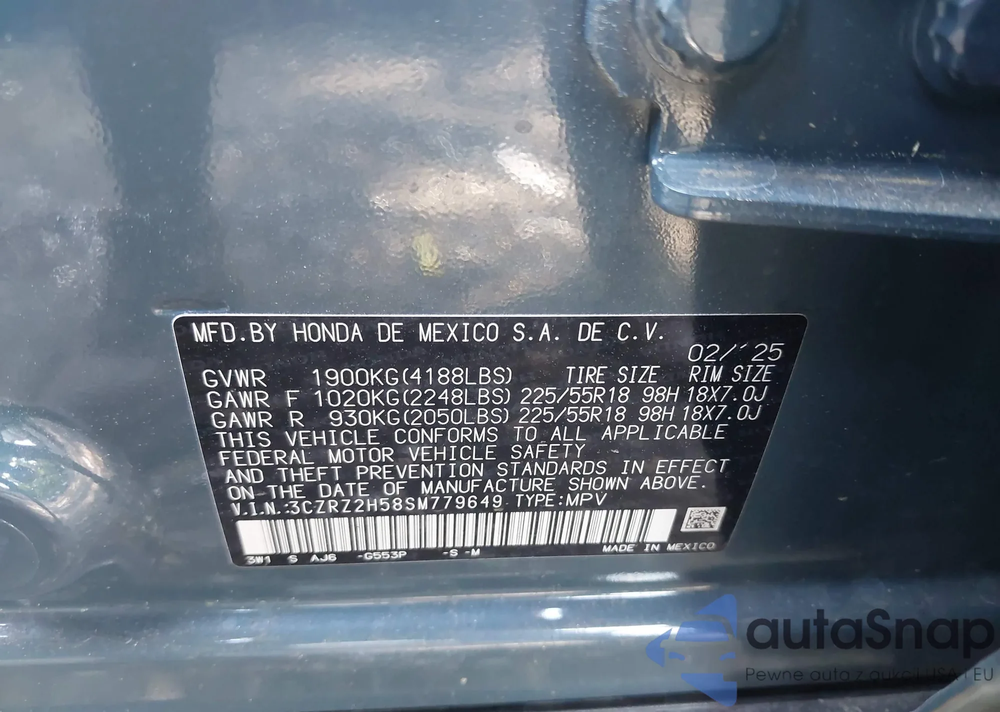 • VIN 3CZRZ2H58SM779649