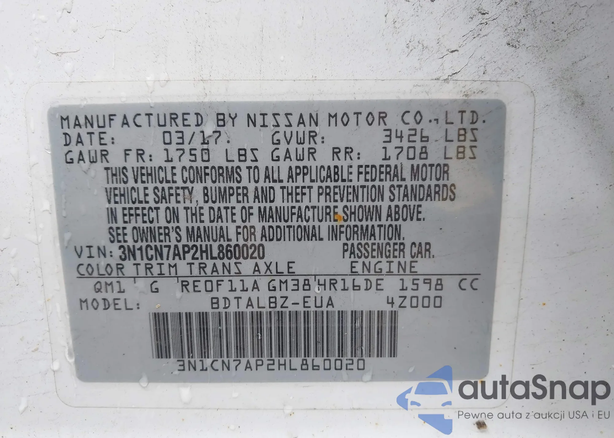 • VIN 3N1CN7AP2HL860020