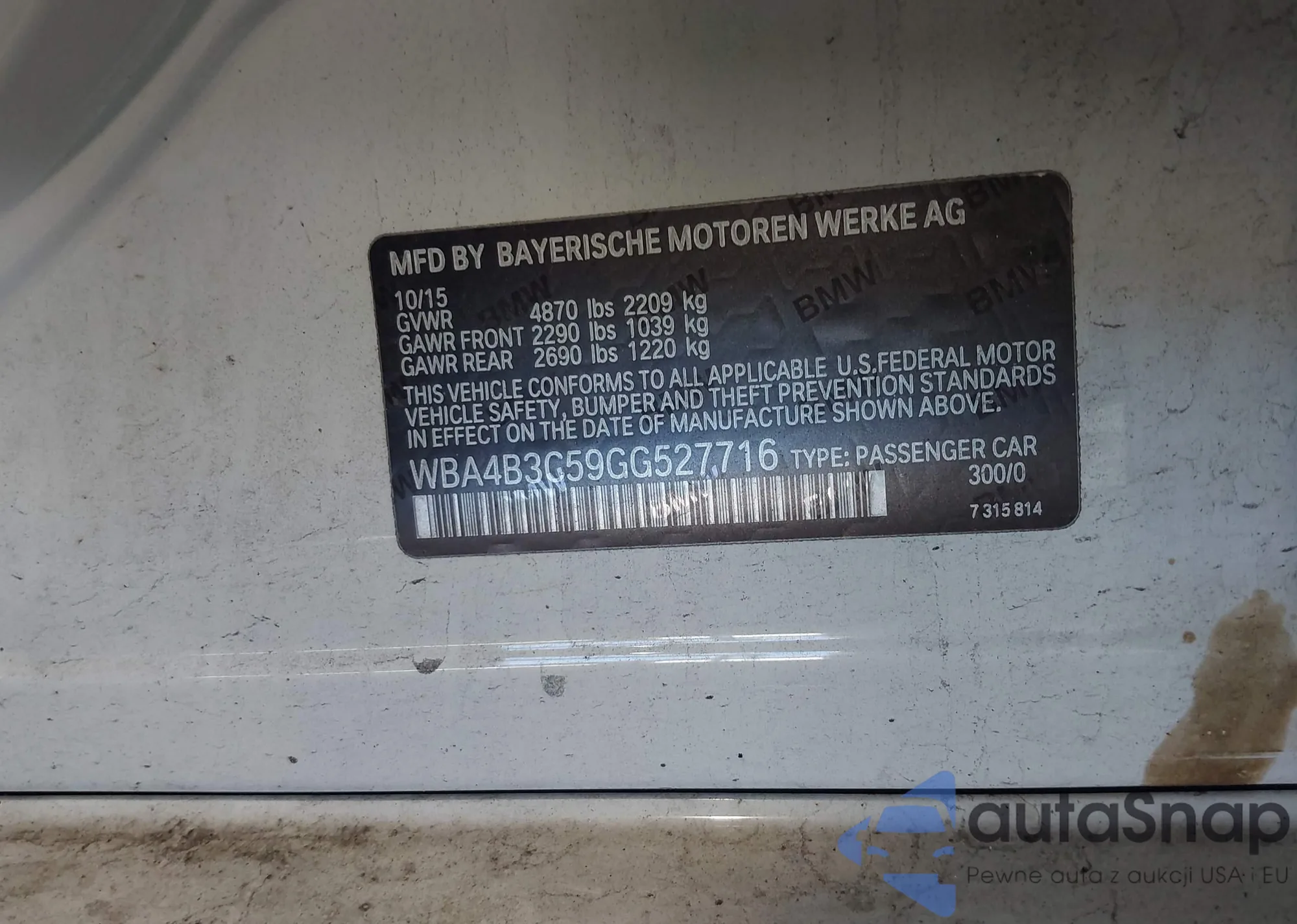 • VIN WBA4B3C59GG527716
