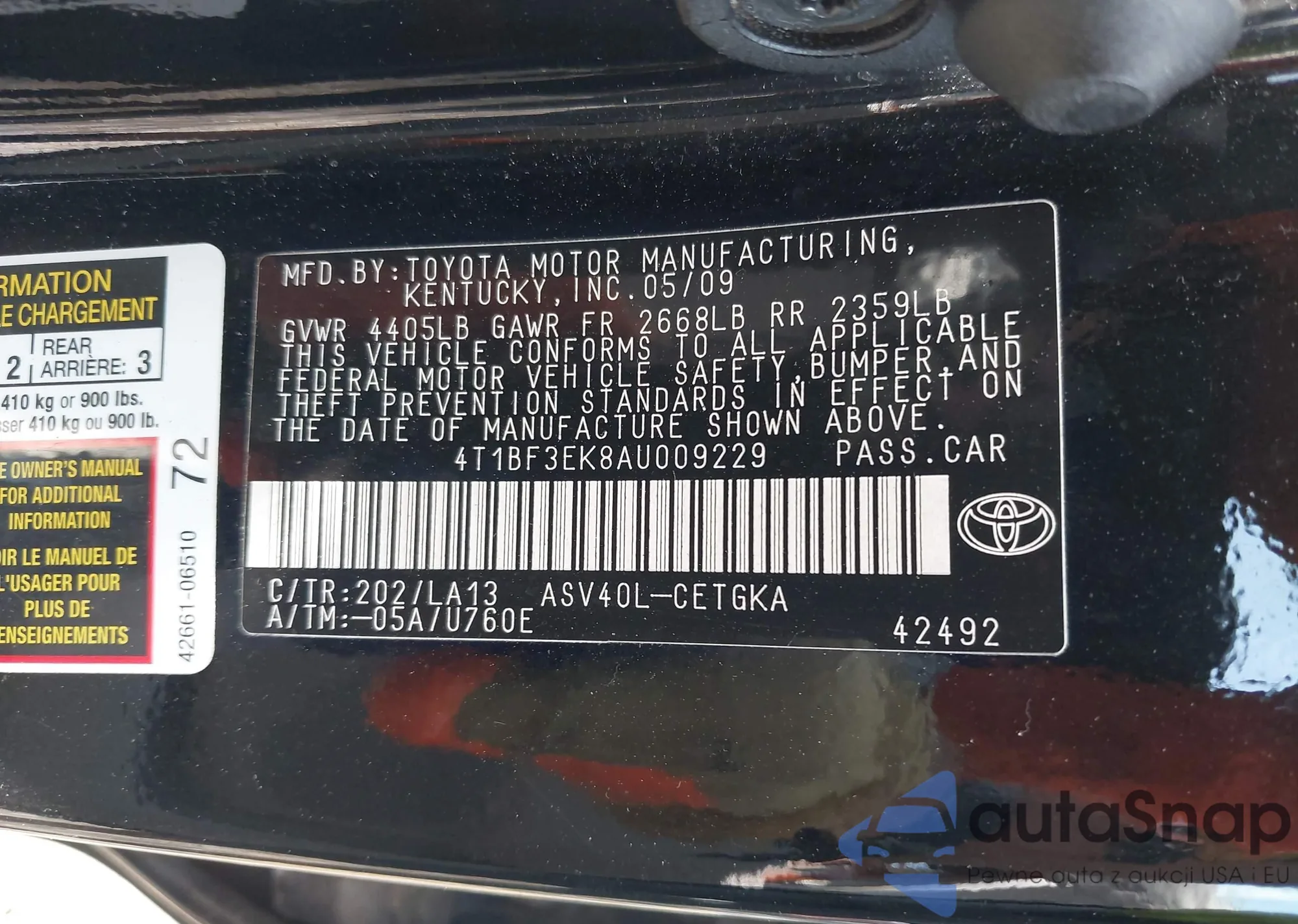 • VIN 4T1BF3EK8AU009229