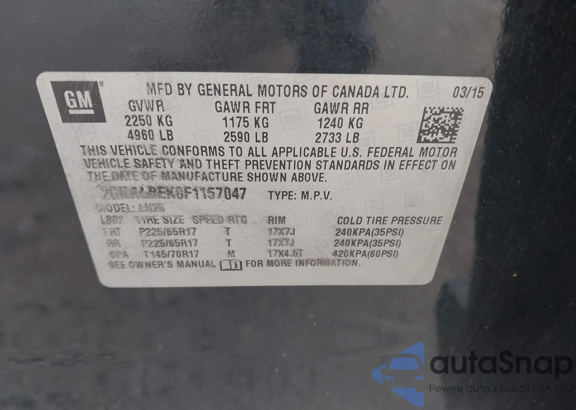 • VIN 2GNALBEK0F1157047