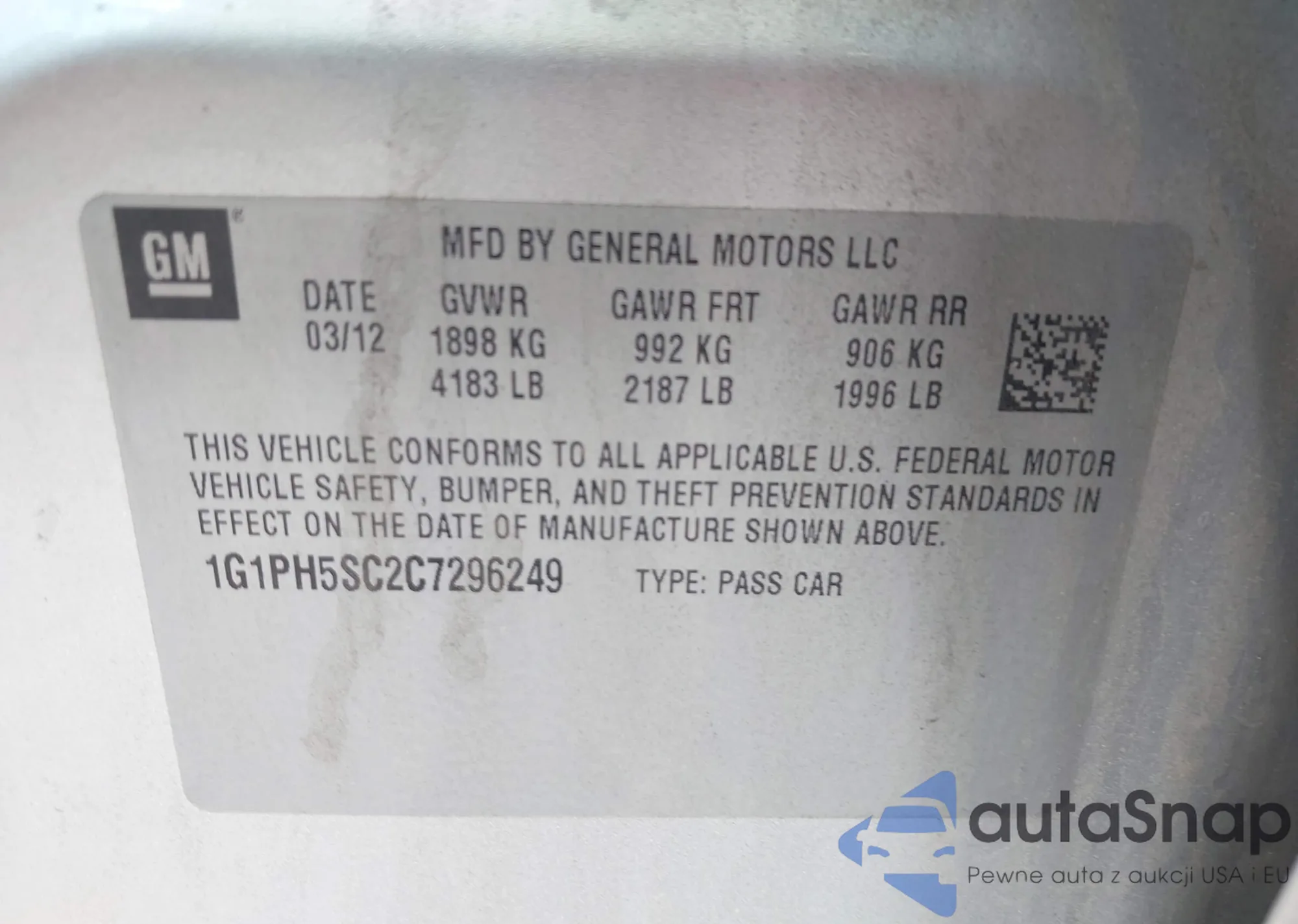LOT: 42745273 VIN: JN8AF5MV5CT108479