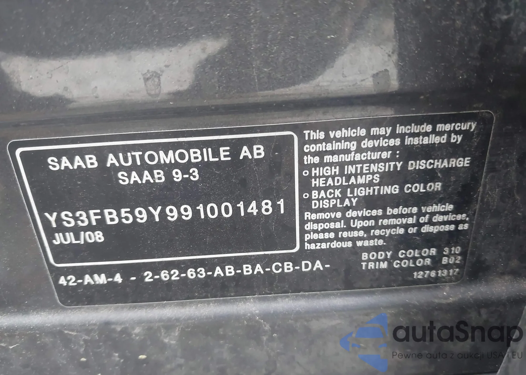 LOT: 42463256 VIN: JF1SF635X1H736146