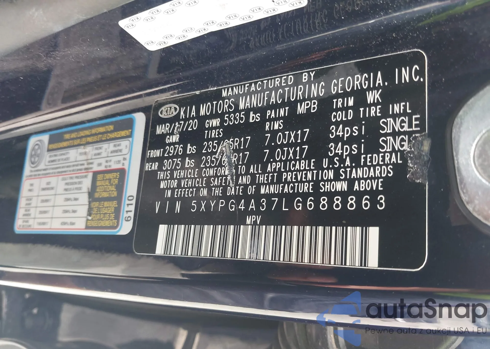 LOT: 42412730 VIN: 5XYPG4A31LG643837