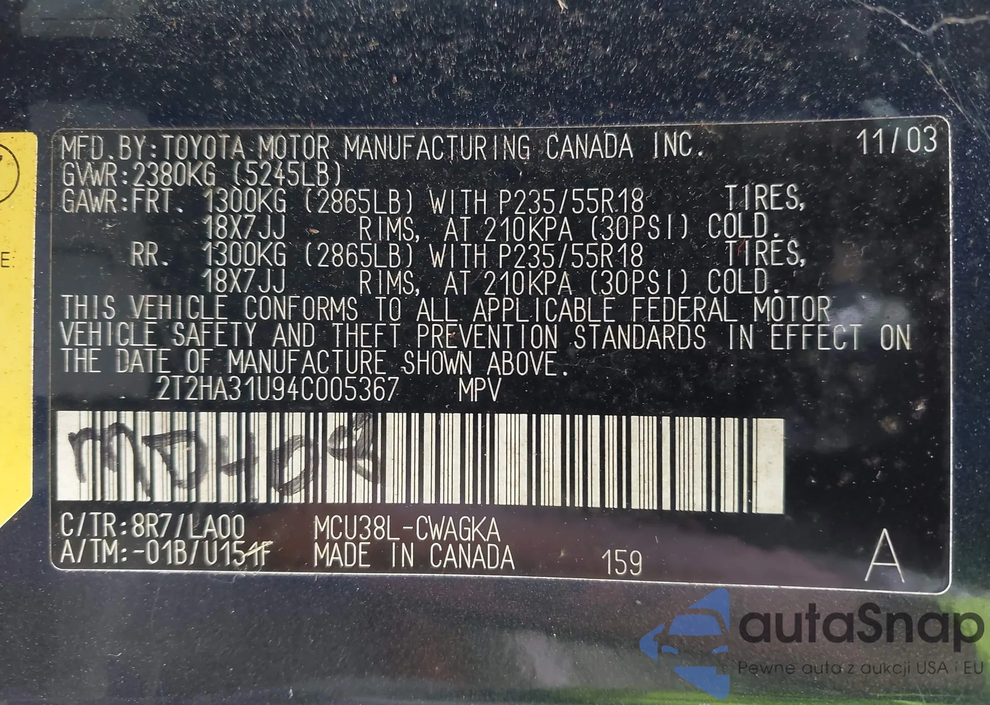 LOT: 42409667 VIN: JTMRK4DVXC5110270