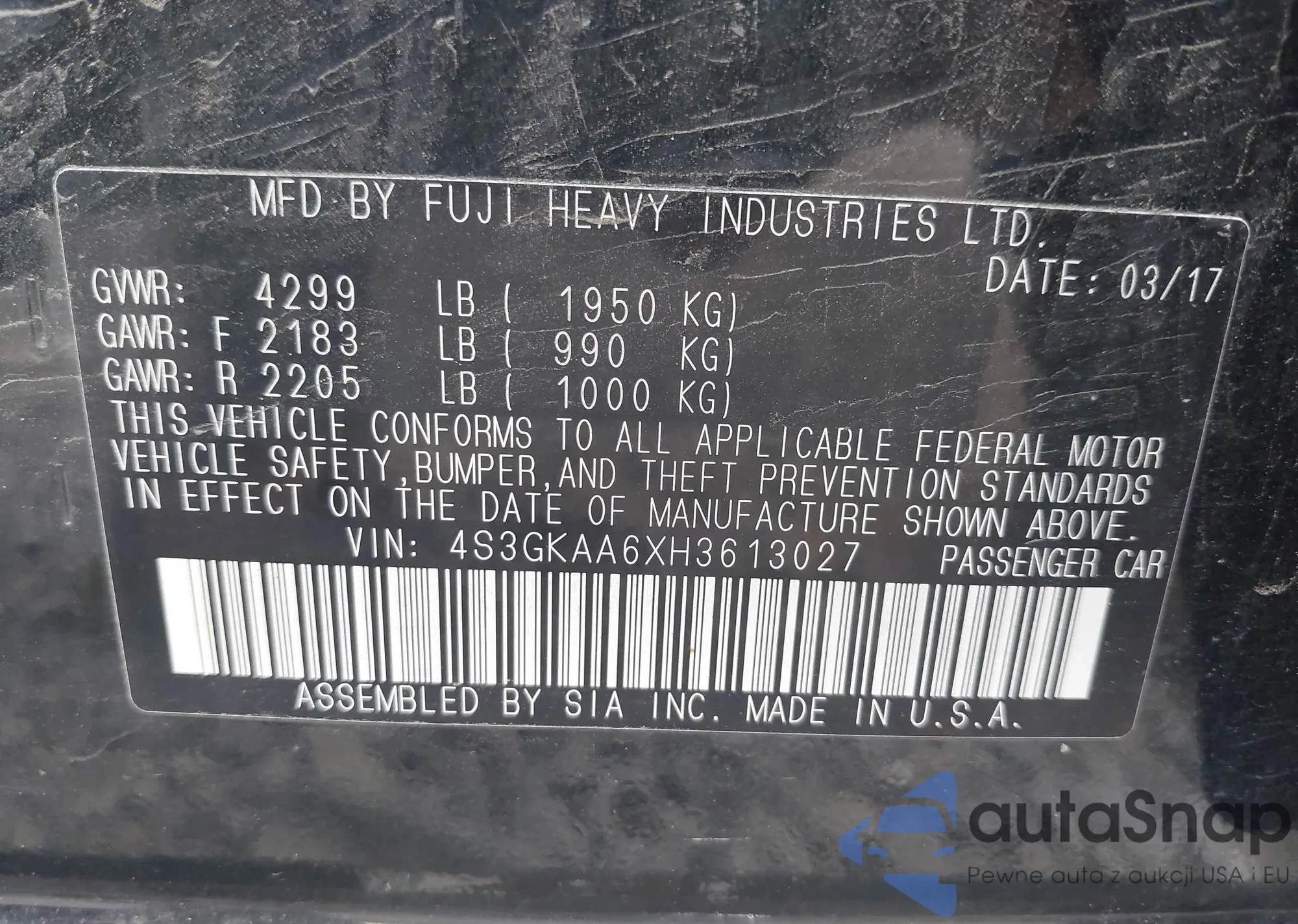 • VIN 4S3GKAA6XH3613027