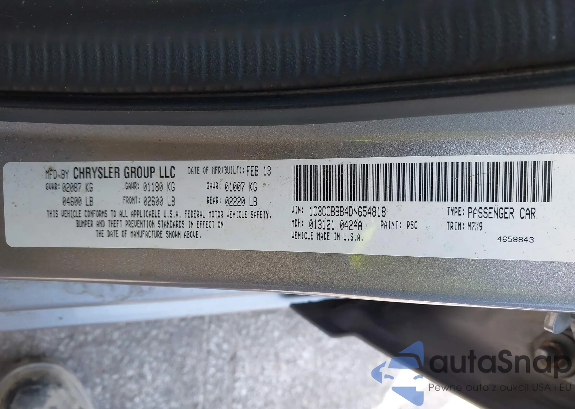 LOT: 42929897 VIN: 1C3CCBBB4DN654818