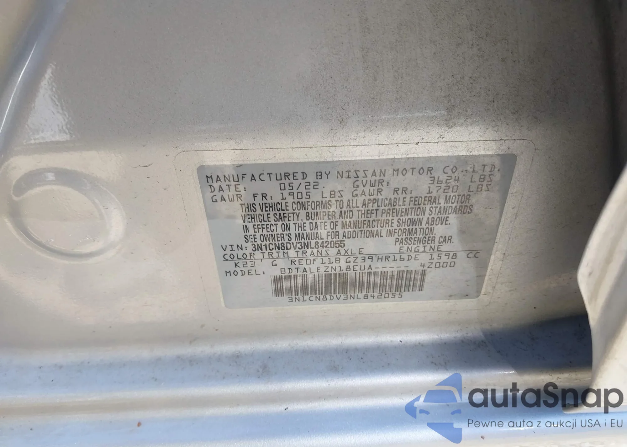 LOT: 42670707 VIN: 3N1AB7AP6FY275537