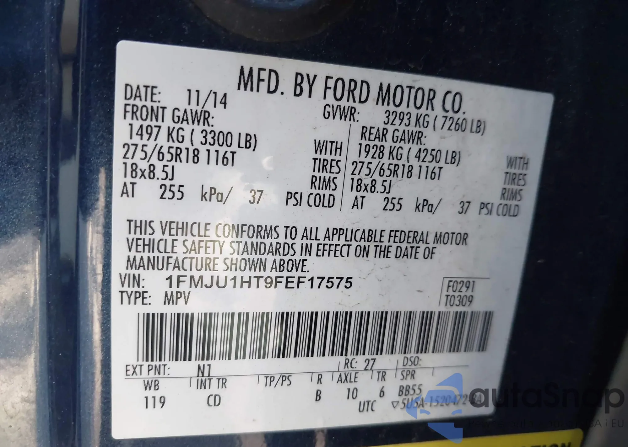 • VIN 1FMJU1HT9FEF17575