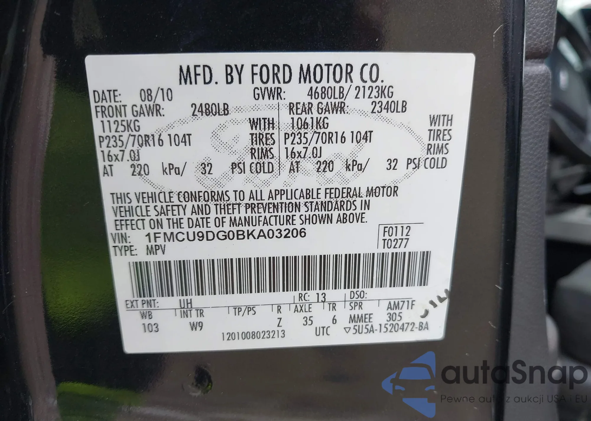 • VIN 1FMCU9DG0BKA03206
