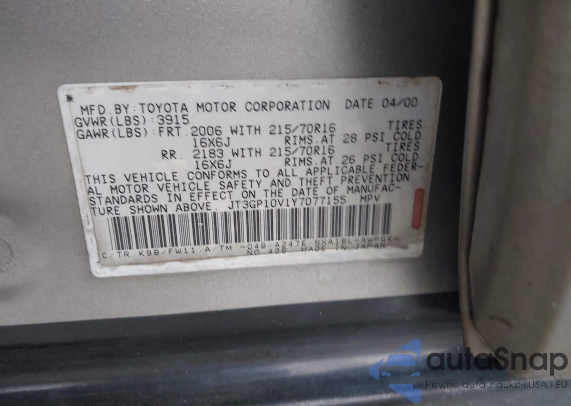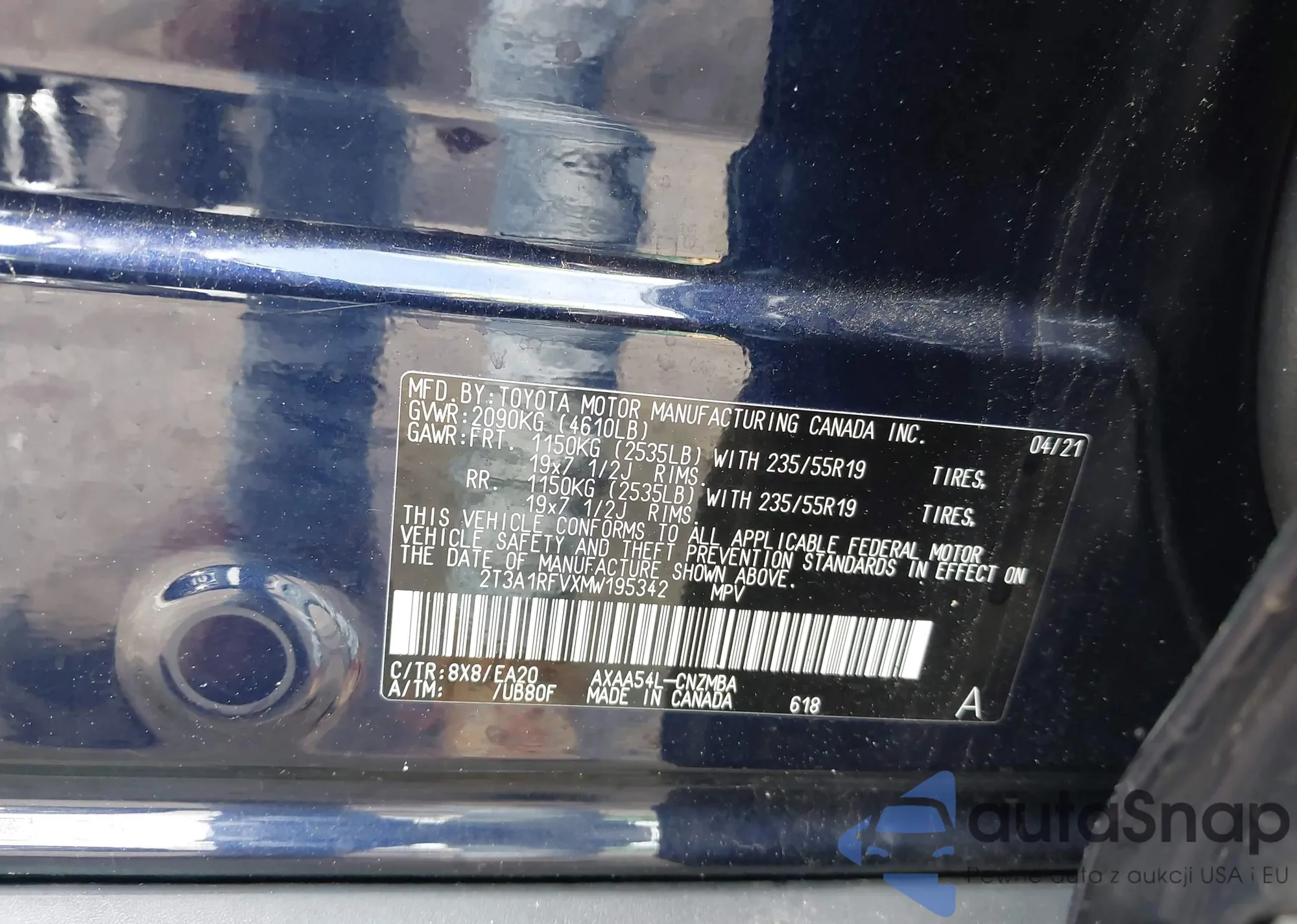 LOT: 42366245 VIN: 2T3A1RFVXMW195342