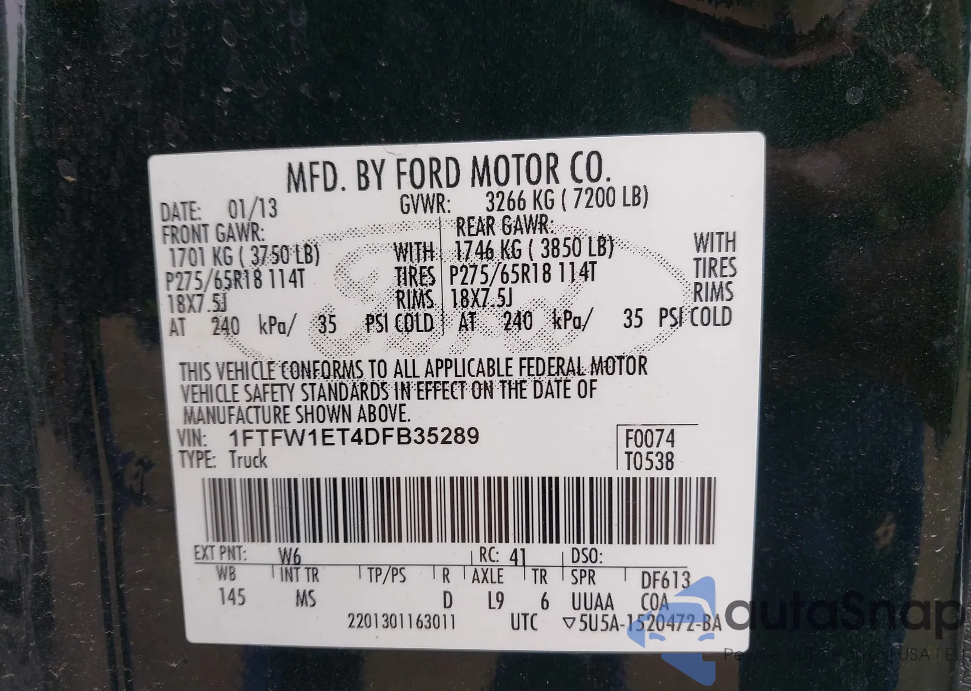 • VIN 1HGCR2F87DA266080