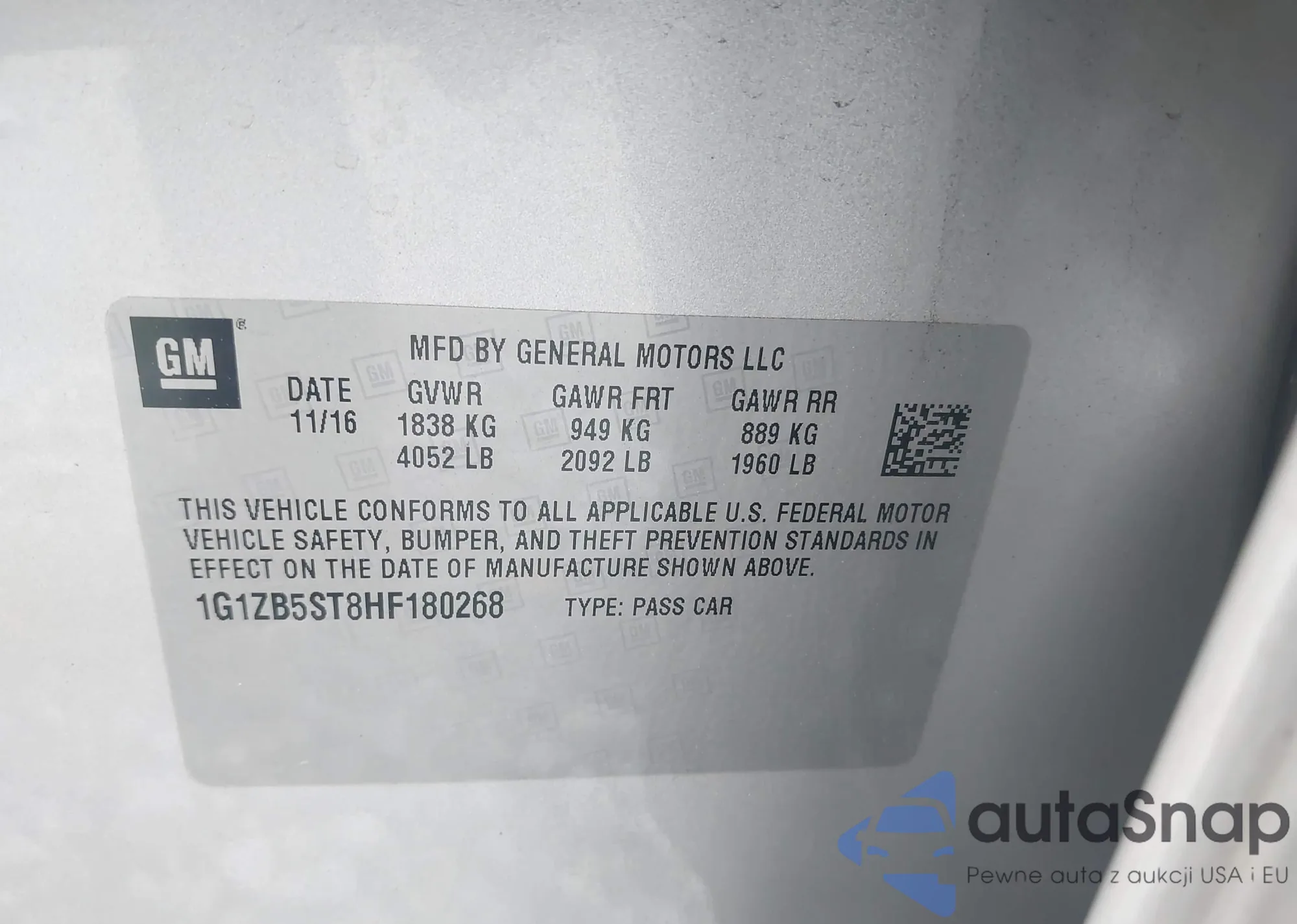 • VIN 1G1ZB5ST8HF180268