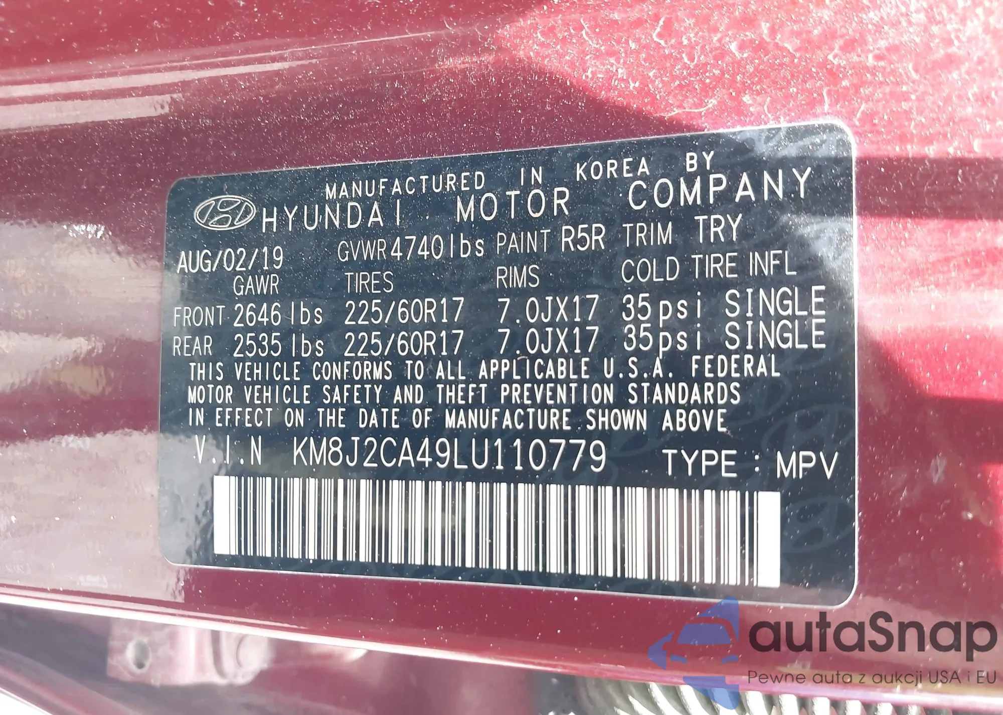 LOT: 42095716 VIN: KMUHCESC7MU066507