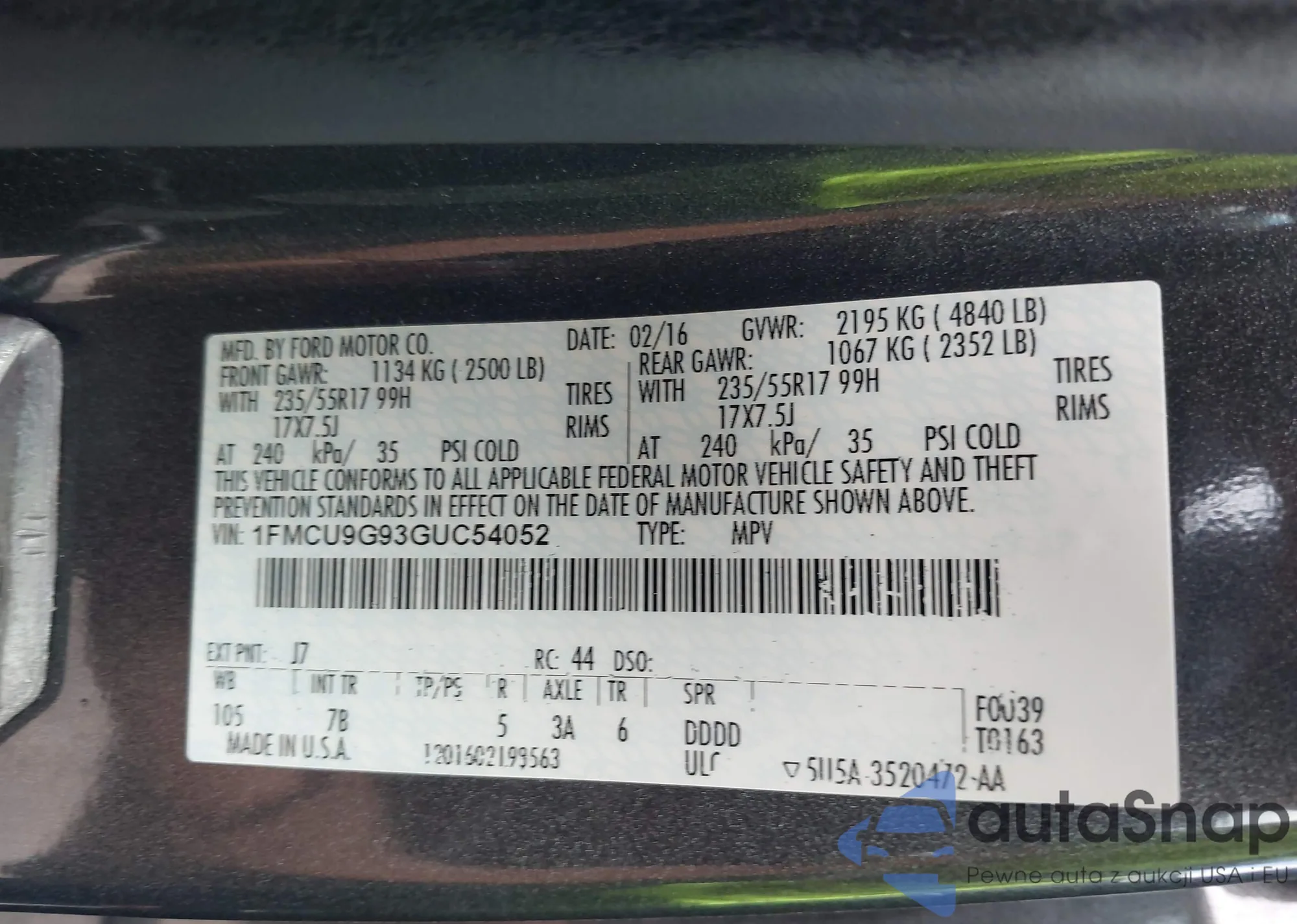 LOT: 42854532 VIN: 3FAHP0JAXAR328233