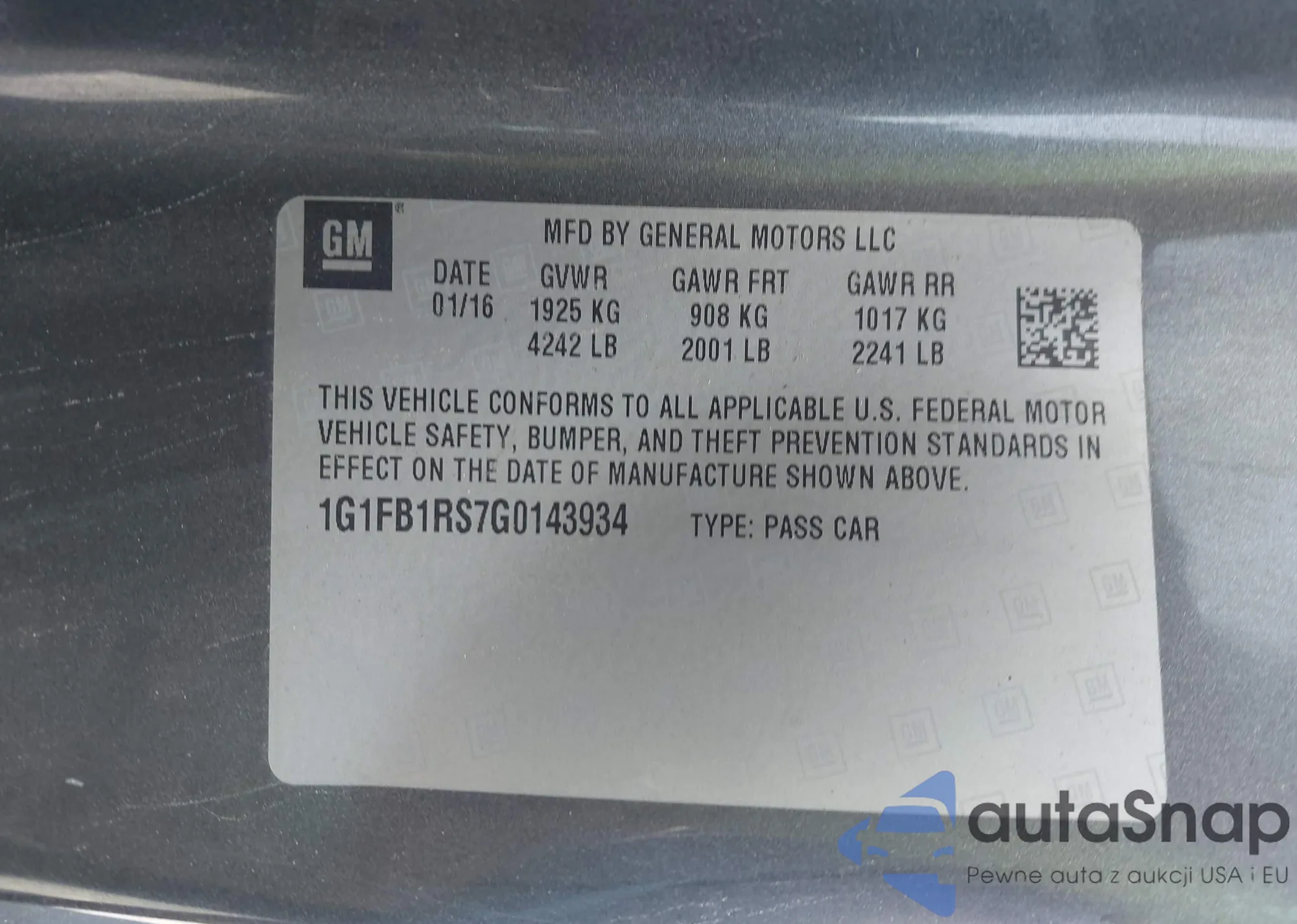 LOT: 42828830 VIN: 1G1ZE5ST0GF268270