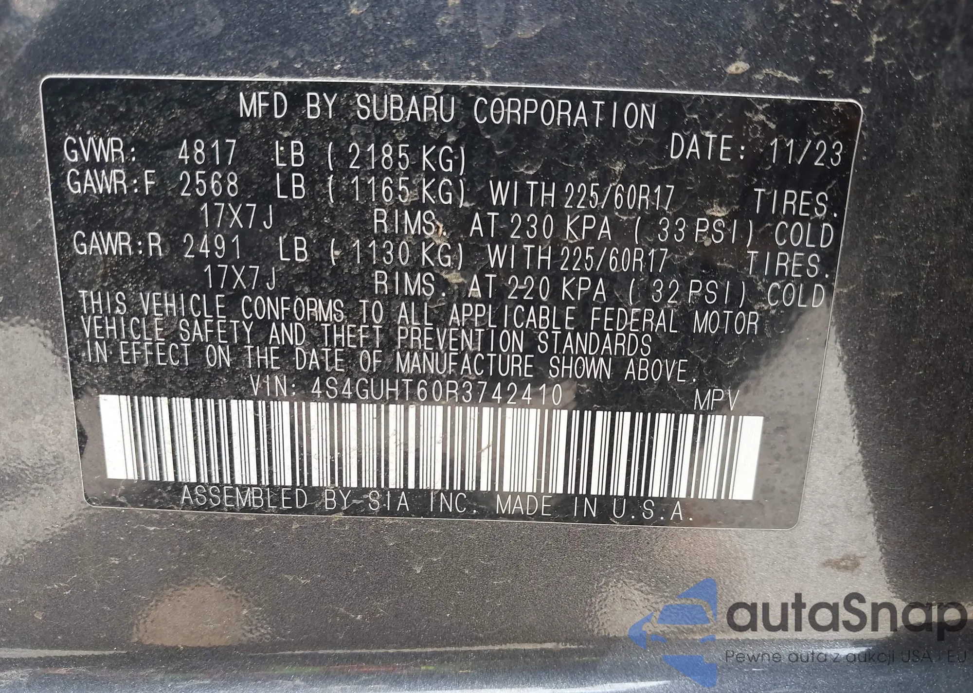 • VIN 4S4GUHT60R3742410
