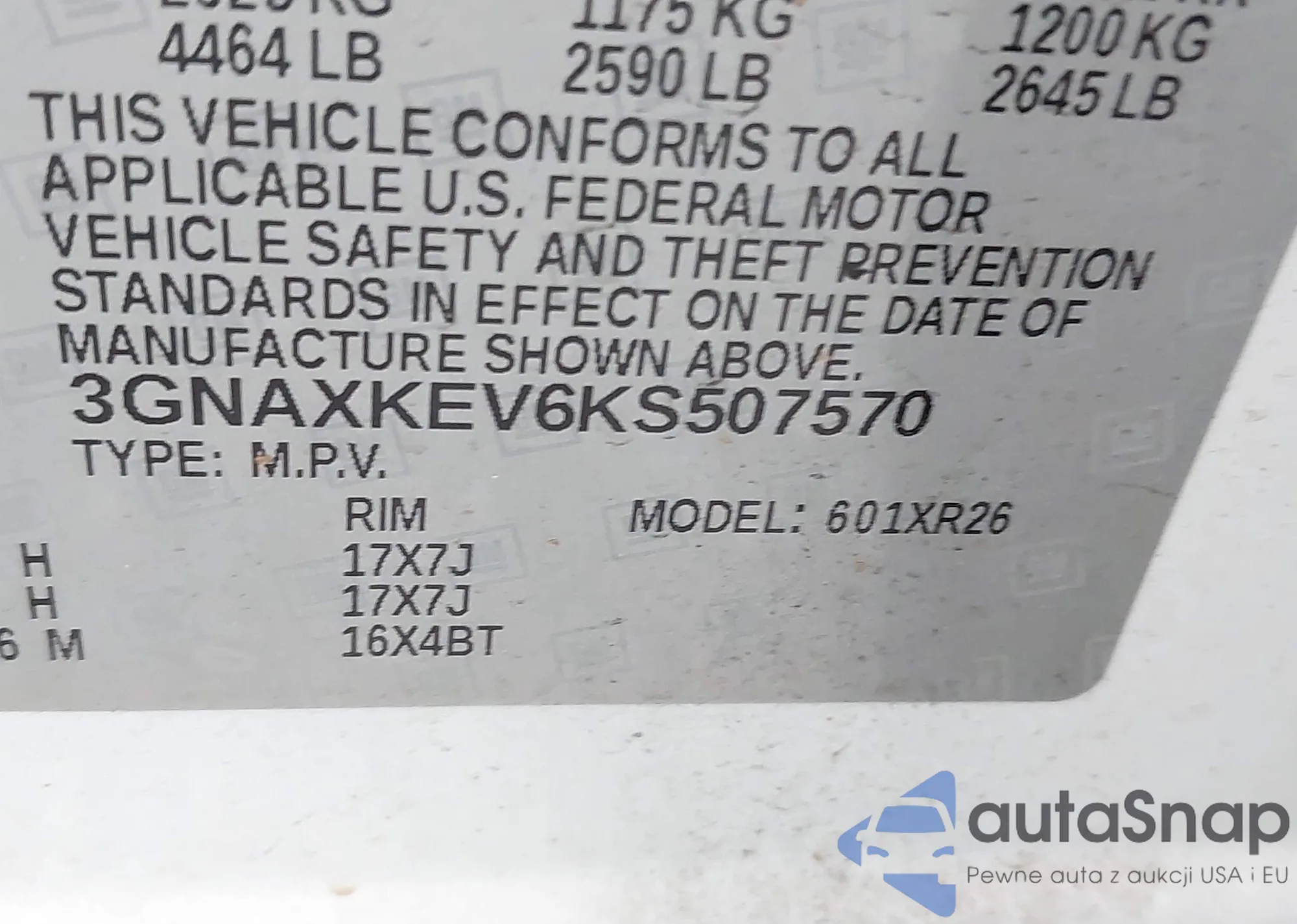 LOT: 42794468 VIN: 3GNAXKEV6KS507570