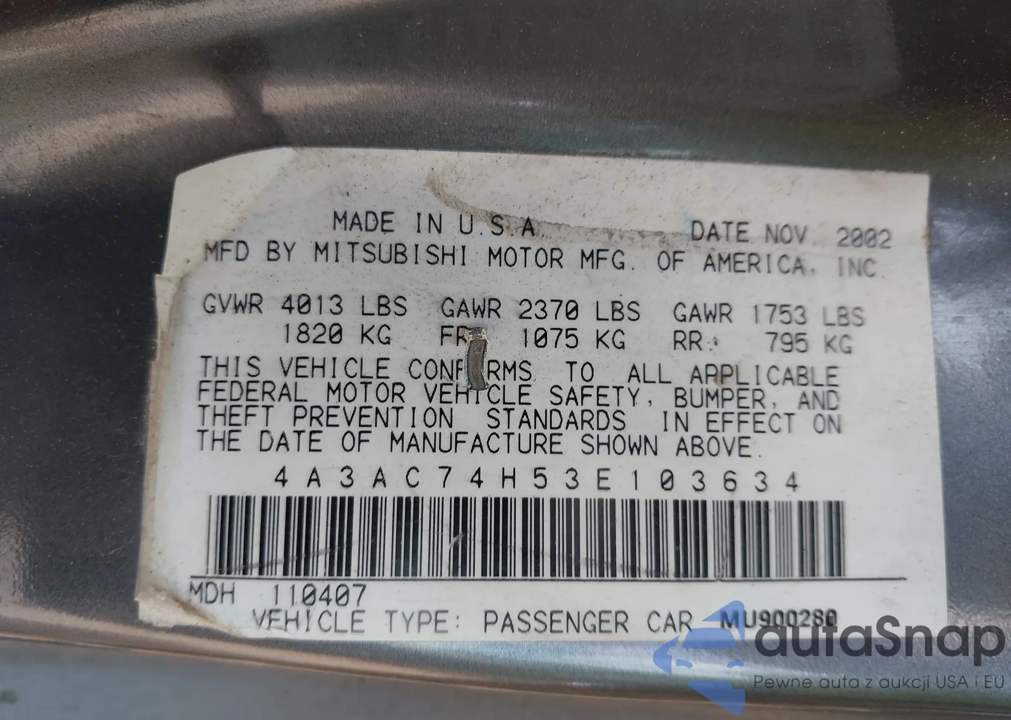 • VIN 4A3AC74H53E103634