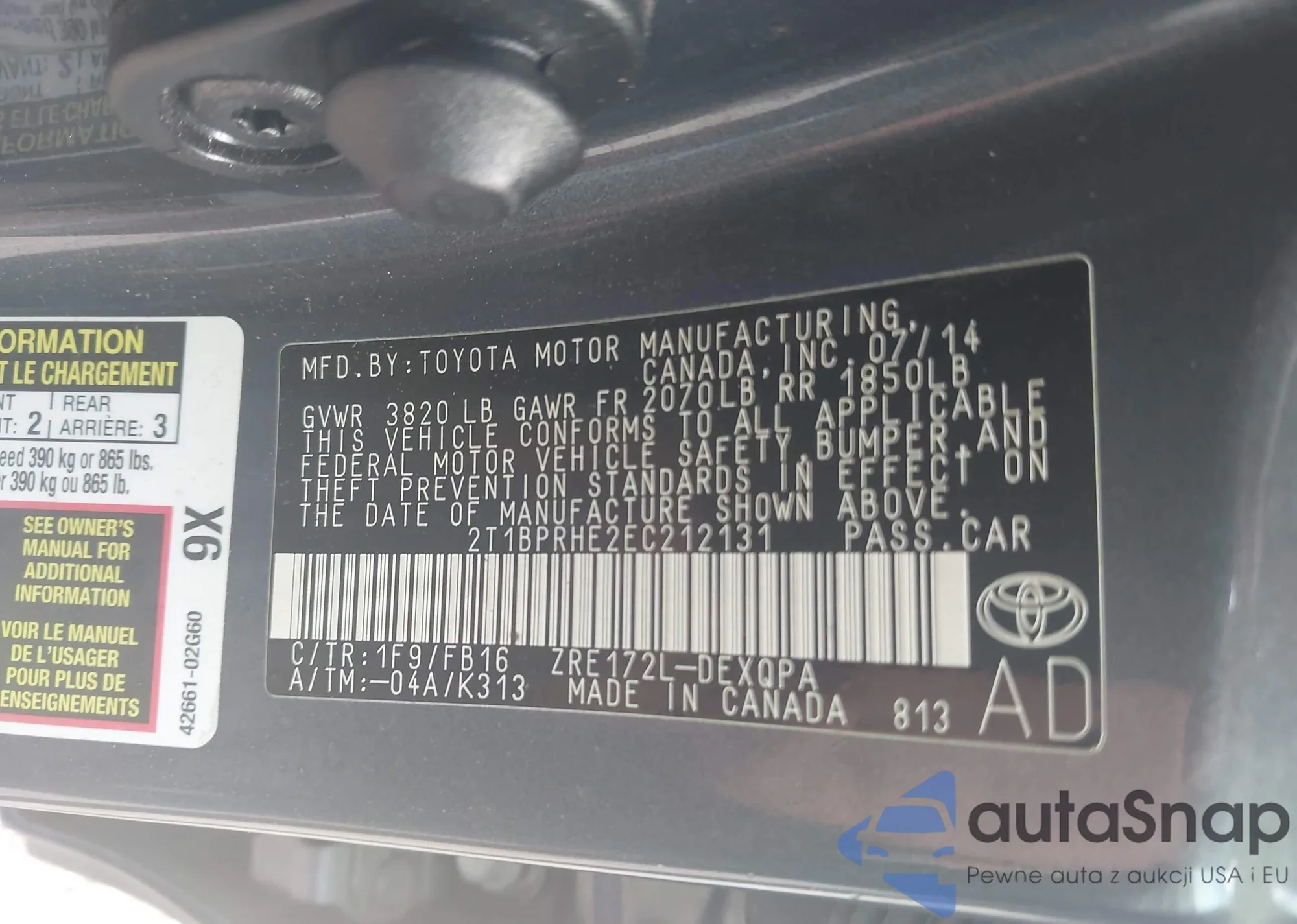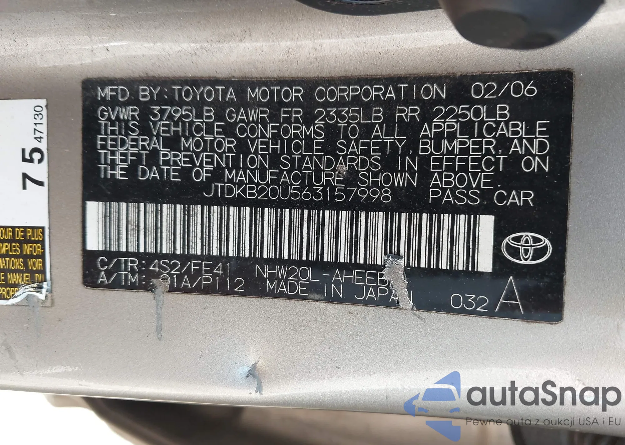 LOT: 42838555 VIN: JTDKB20U563157998
