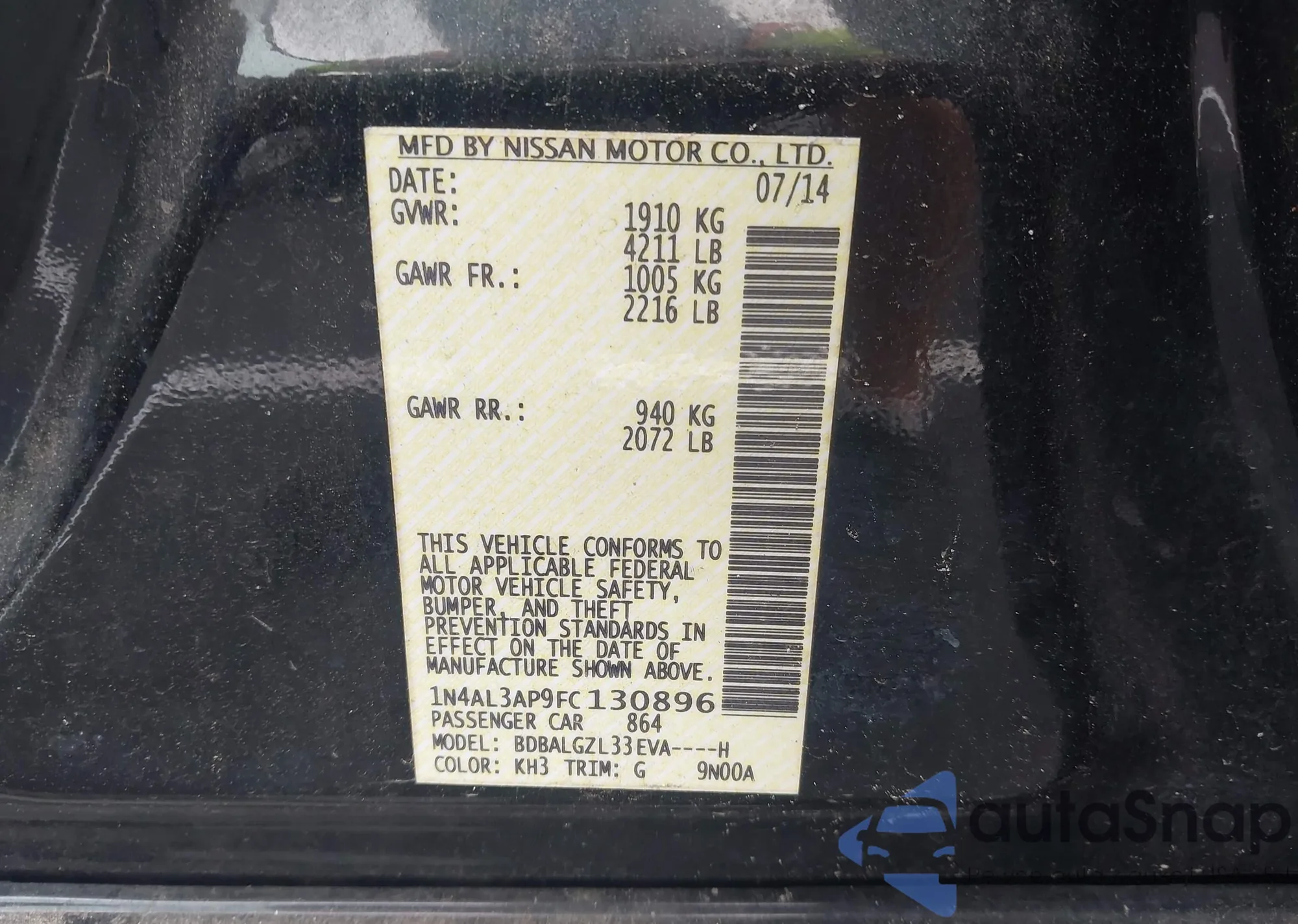 • VIN 3N1CN7AP3EL806981