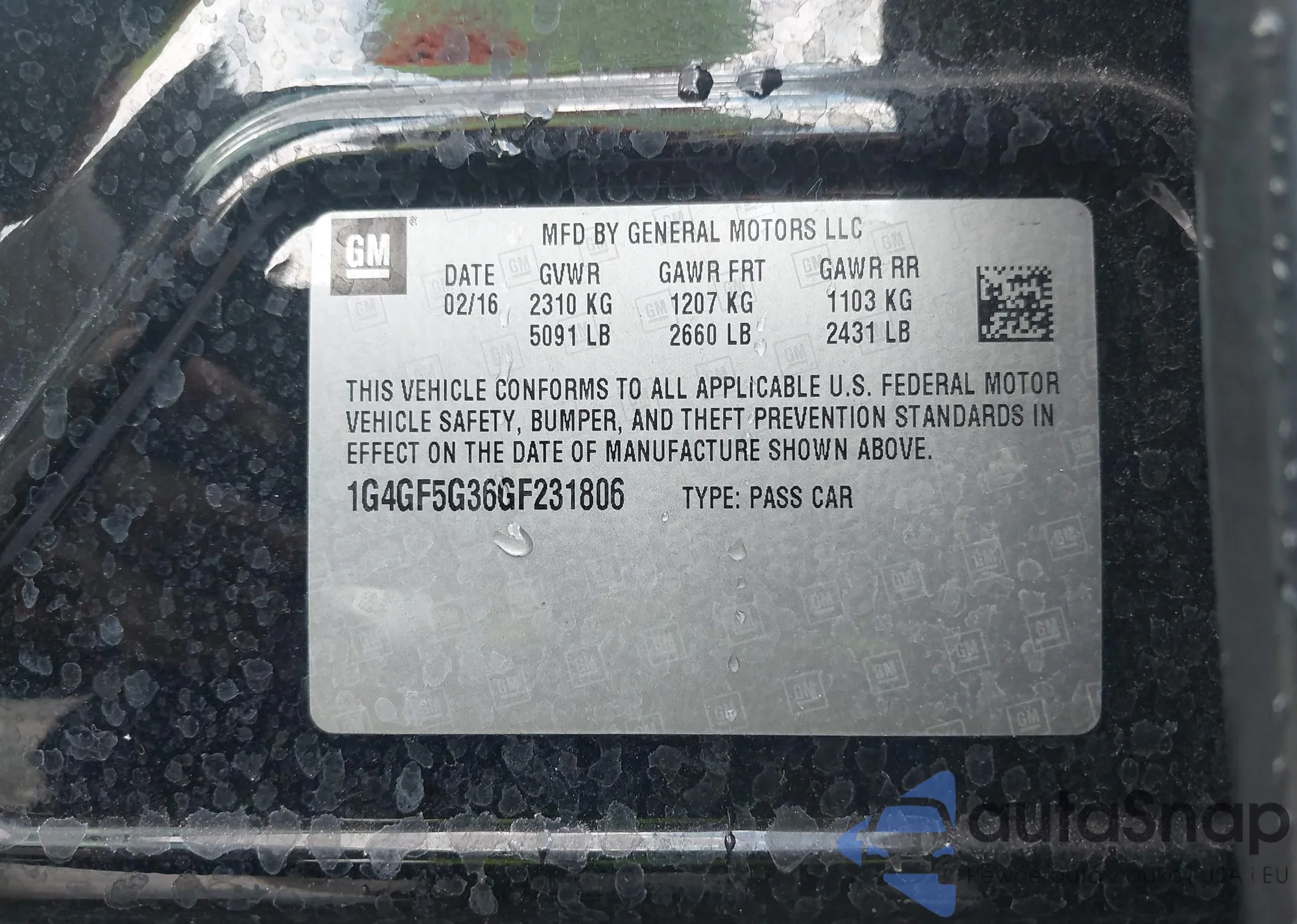 LOT: 42785687 VIN: 1G4GF5G36GF231806