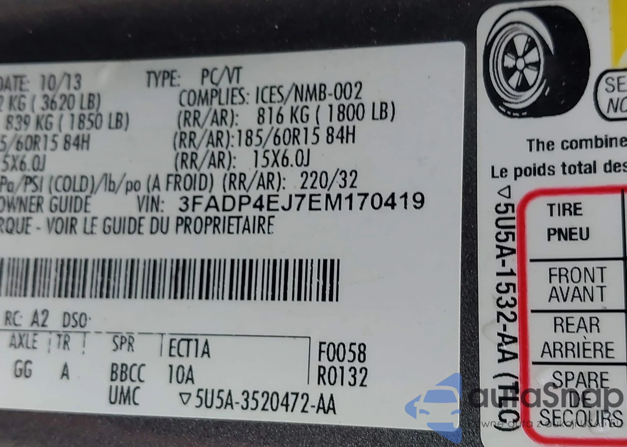 • VIN 3FADP4EJ7EM170419