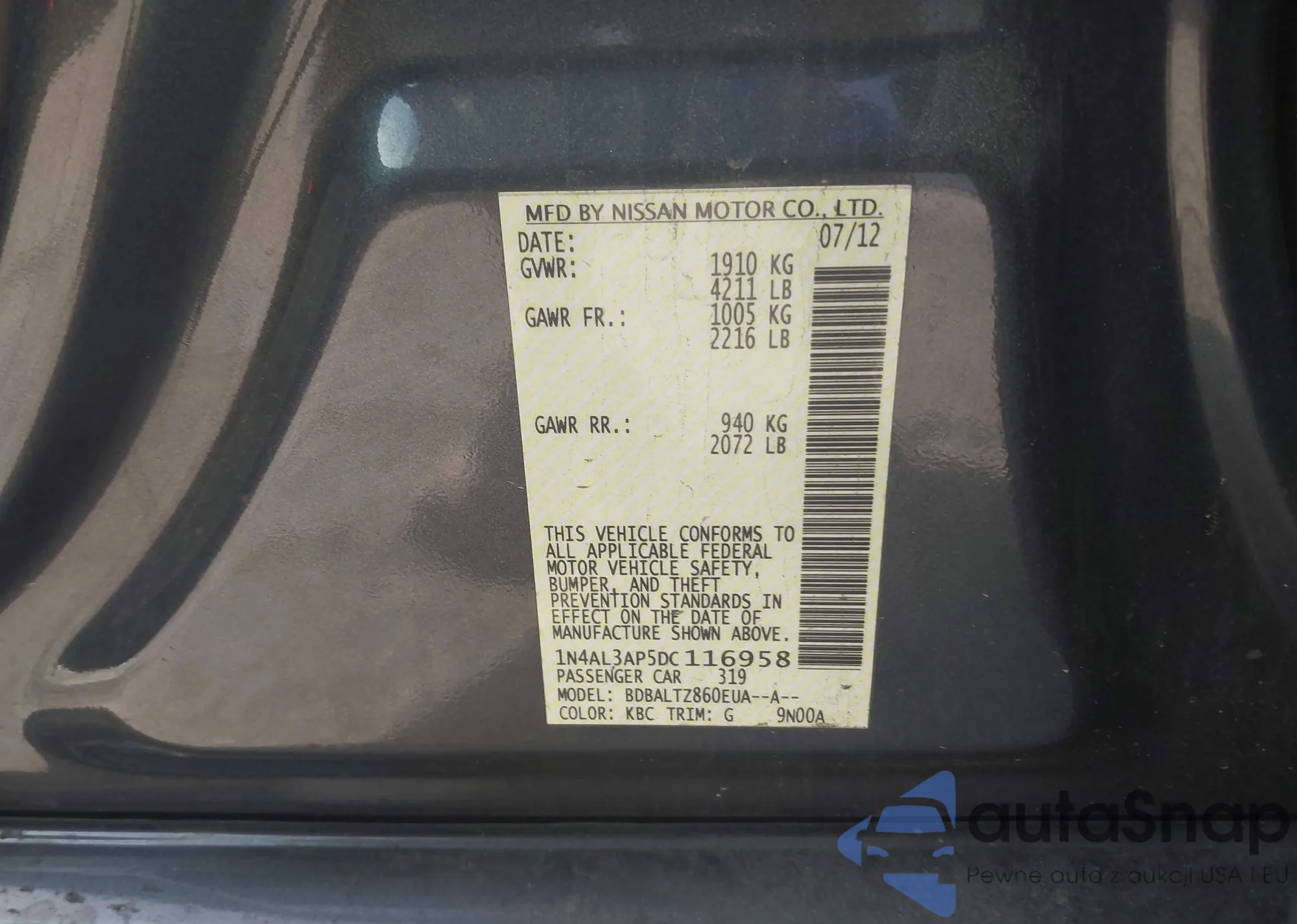 LOT: 42546608 VIN: 1N4AL3AP6JC125566