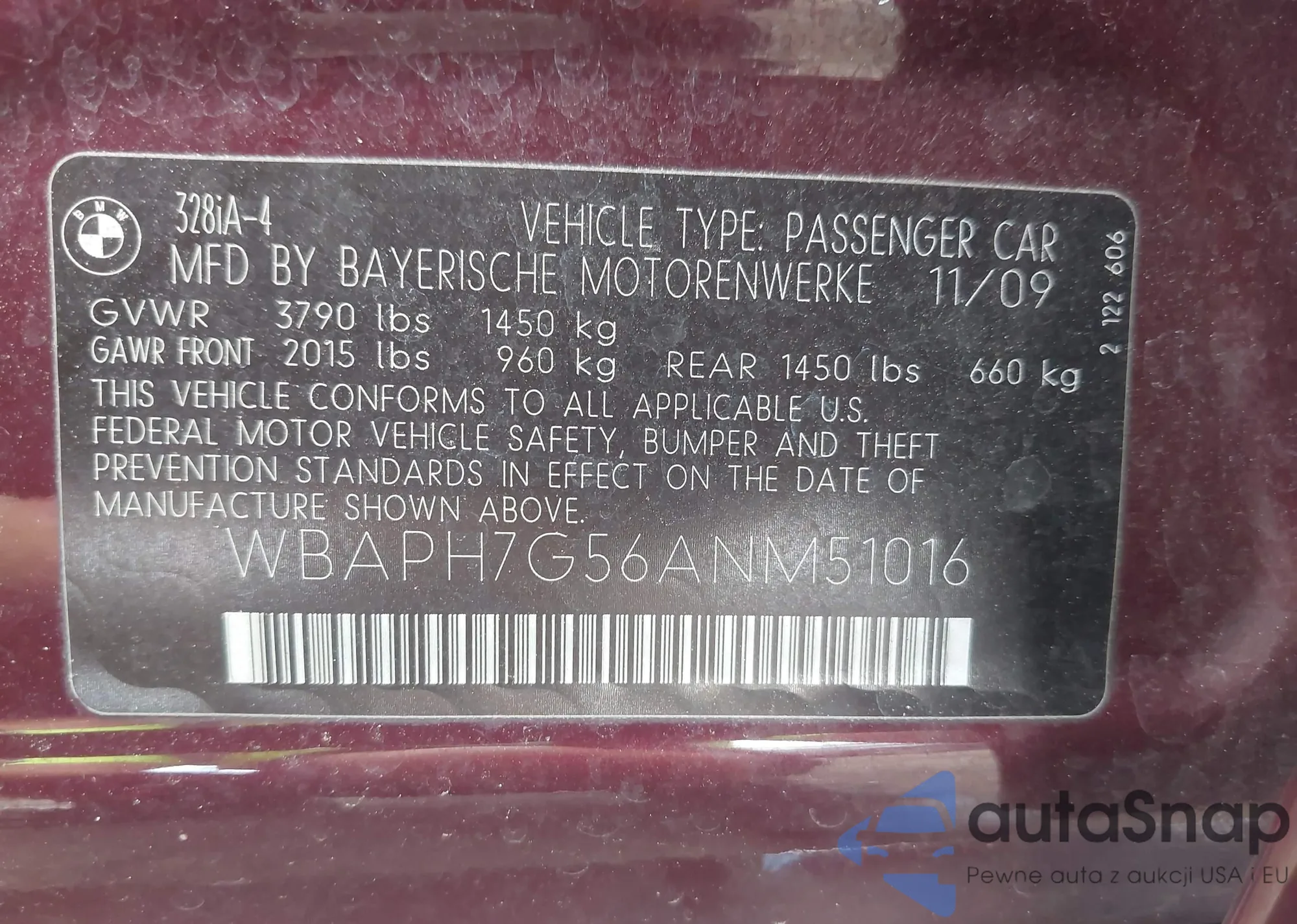 LOT: 42764917 VIN: WBAPH7G56ANM51016