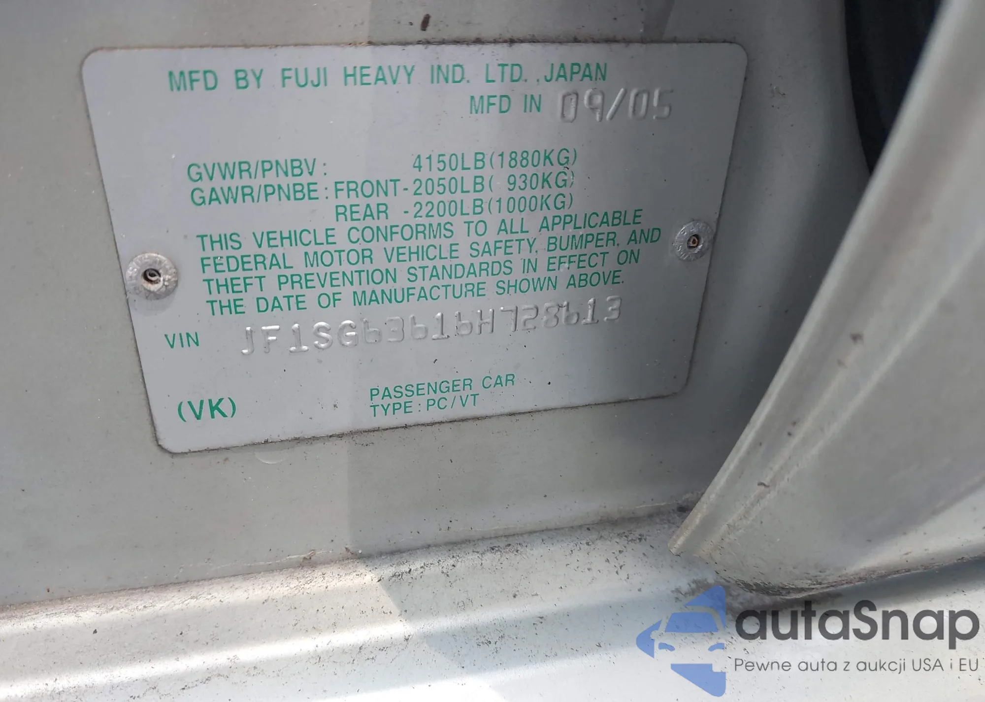 LOT: 42782097 VIN: JF1SG63616H728613