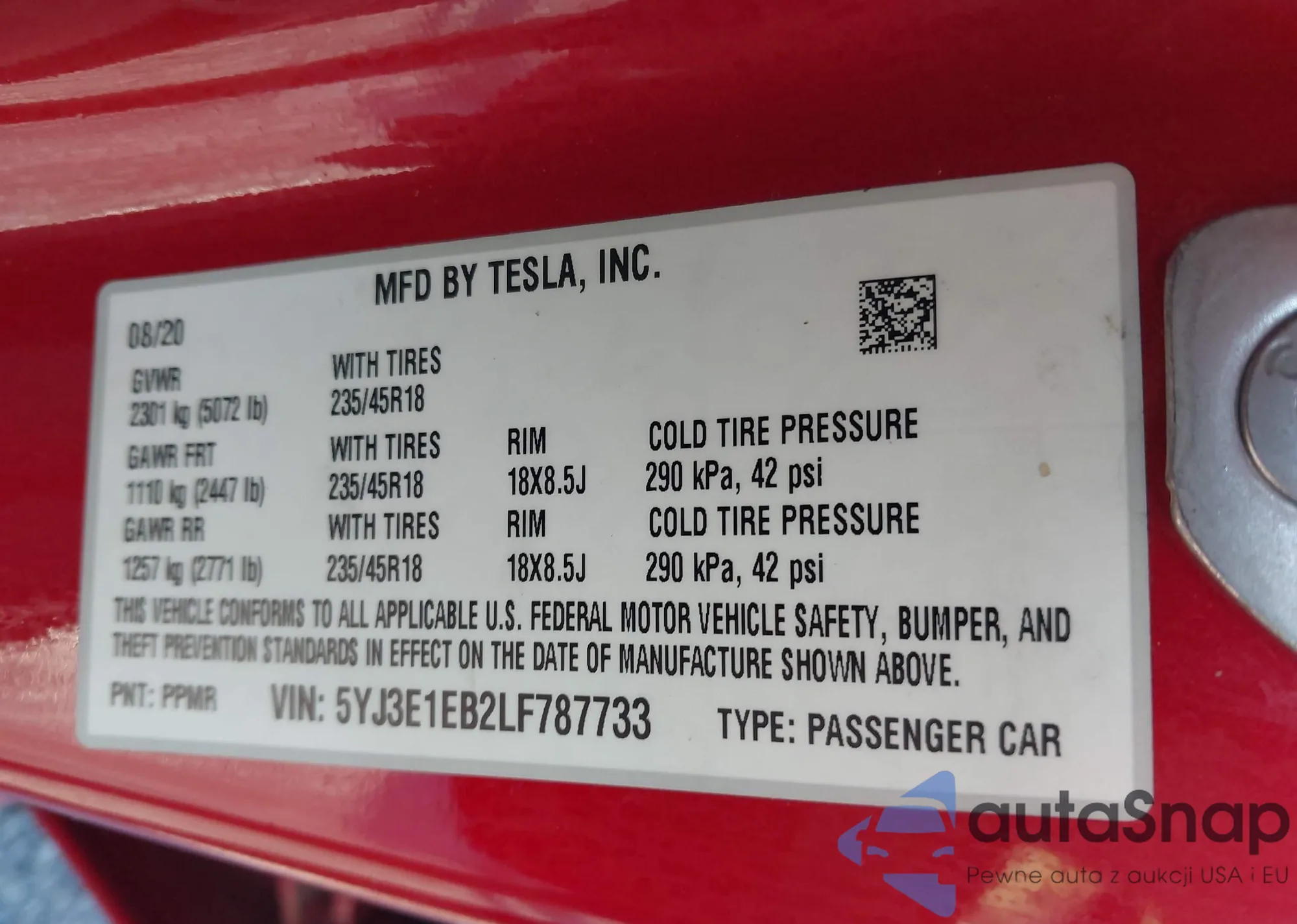 • VIN 5YJ3E1EB2LF787733