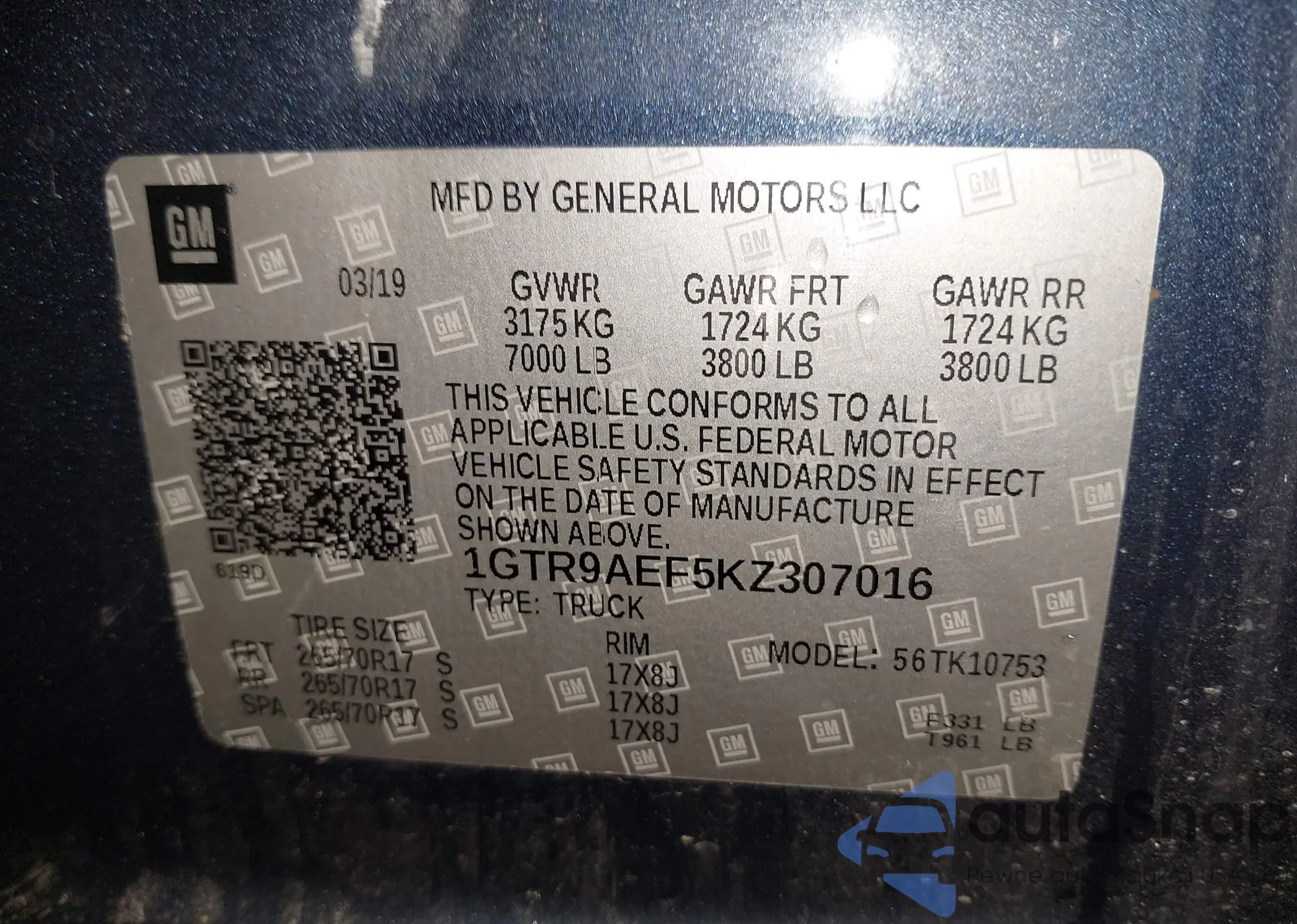 LOT: 42578310 VIN: 1GTR9AEF5KZ307016