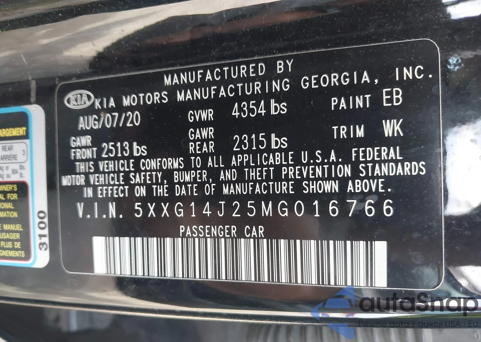 LOT: 42614397 VIN: 5XXG14J25MG016766