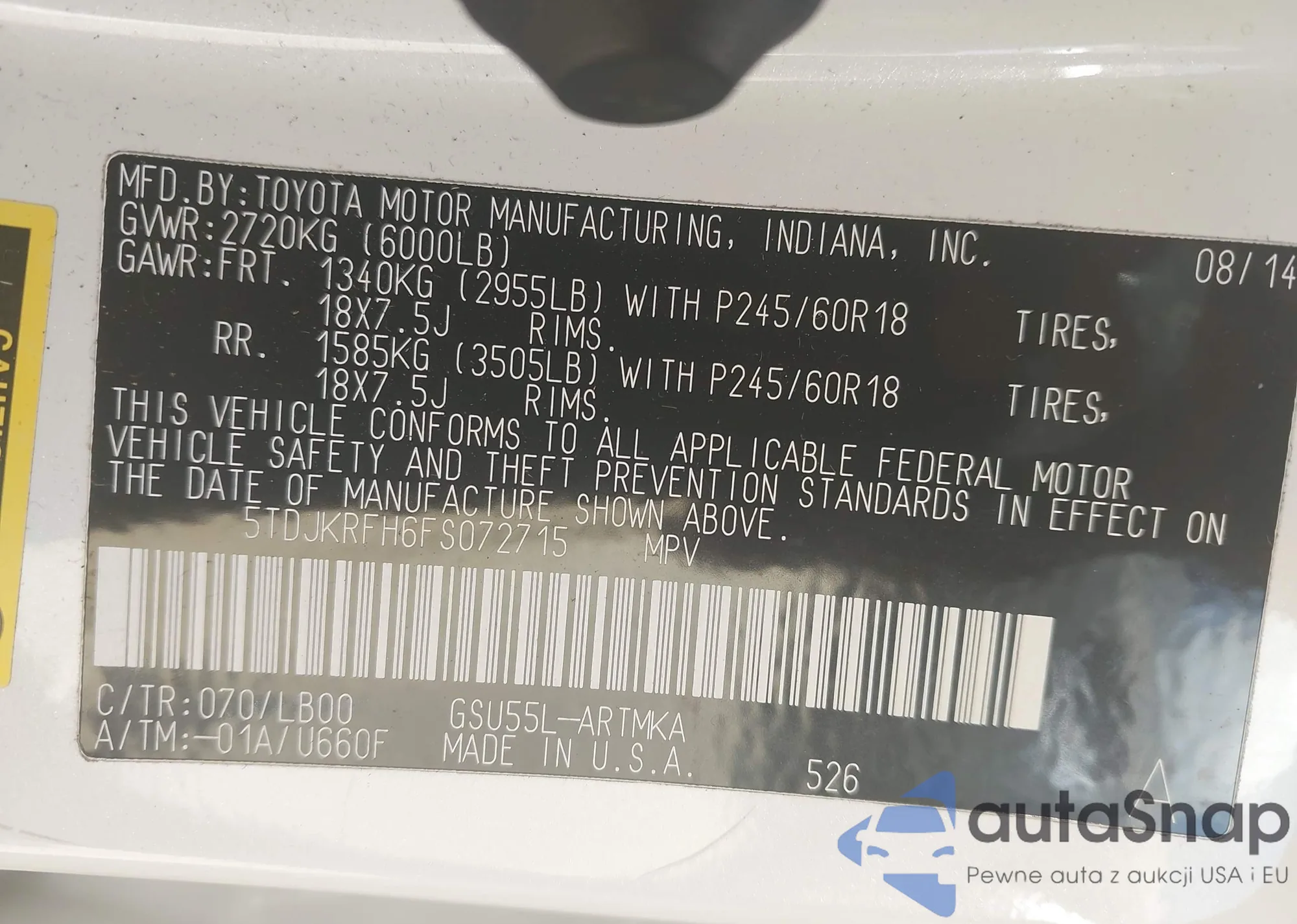 • VIN 5TDJKRFH6FS072715