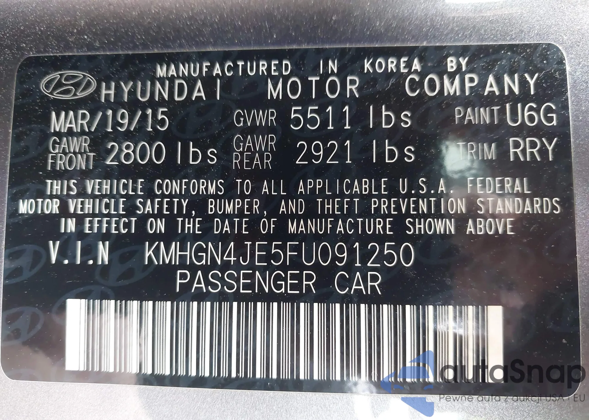 • VIN KMHGN4JE5FU091250