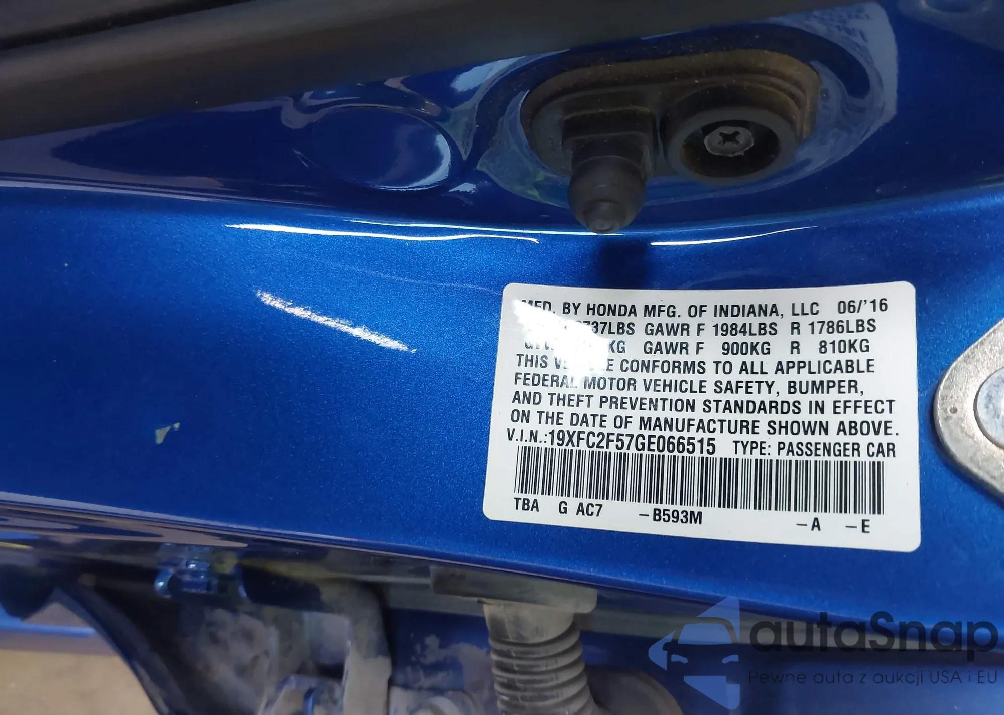 • VIN 19XFC2F57GE066515