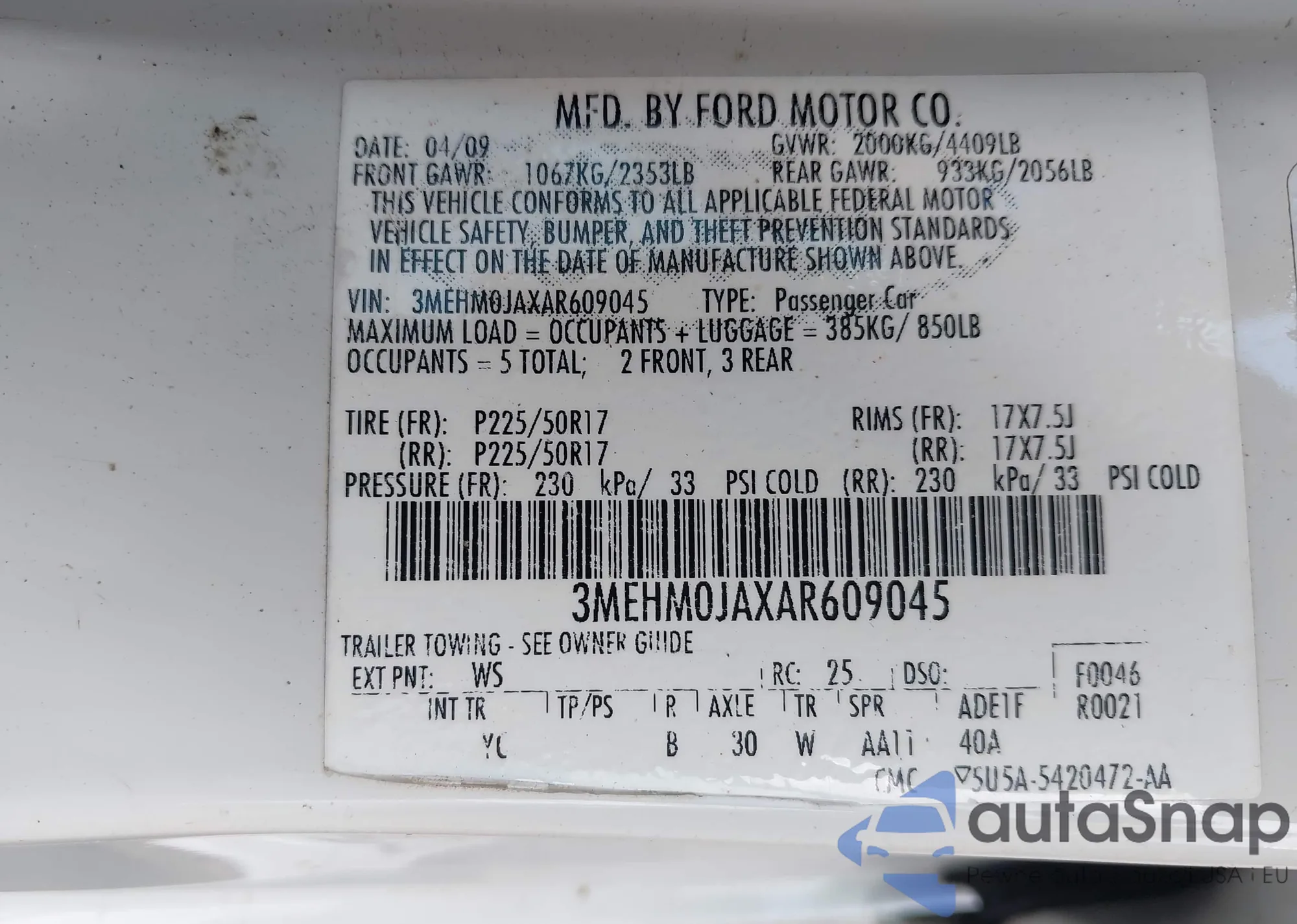 • VIN 3MEHM0JAXAR609045