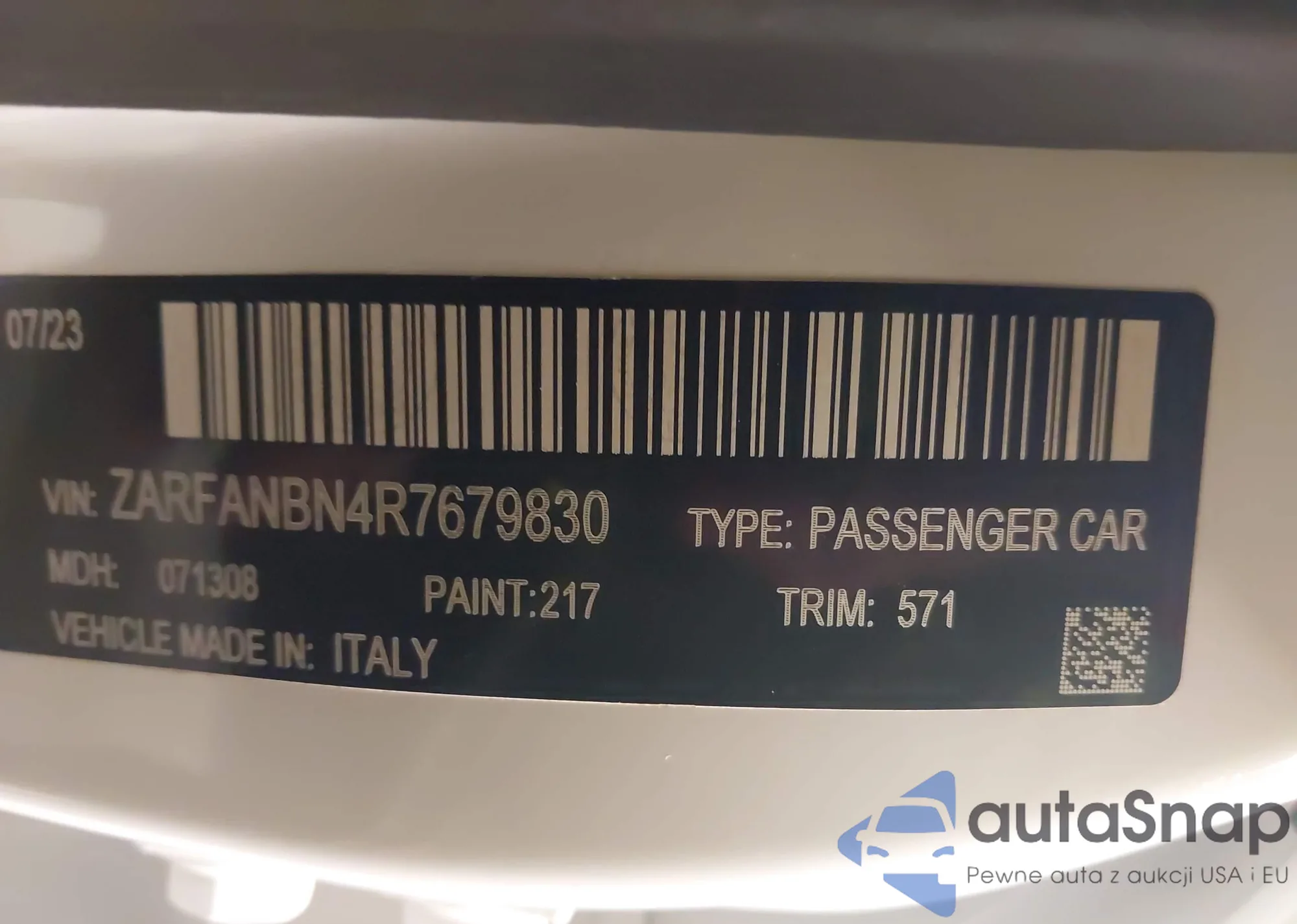 • VIN ZARFANBN4R7679830
