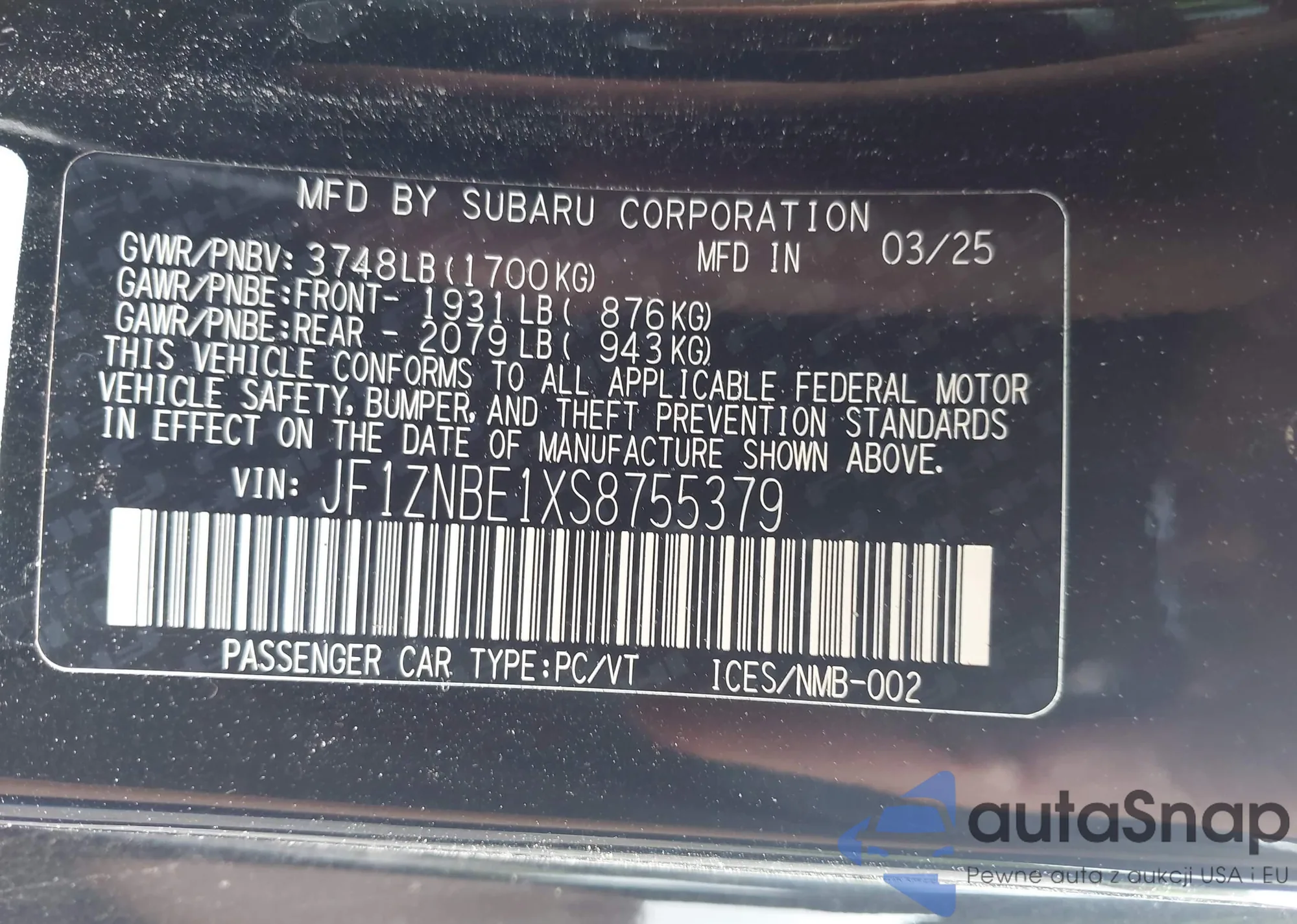 • VIN JF1ZNBE1XS8755379