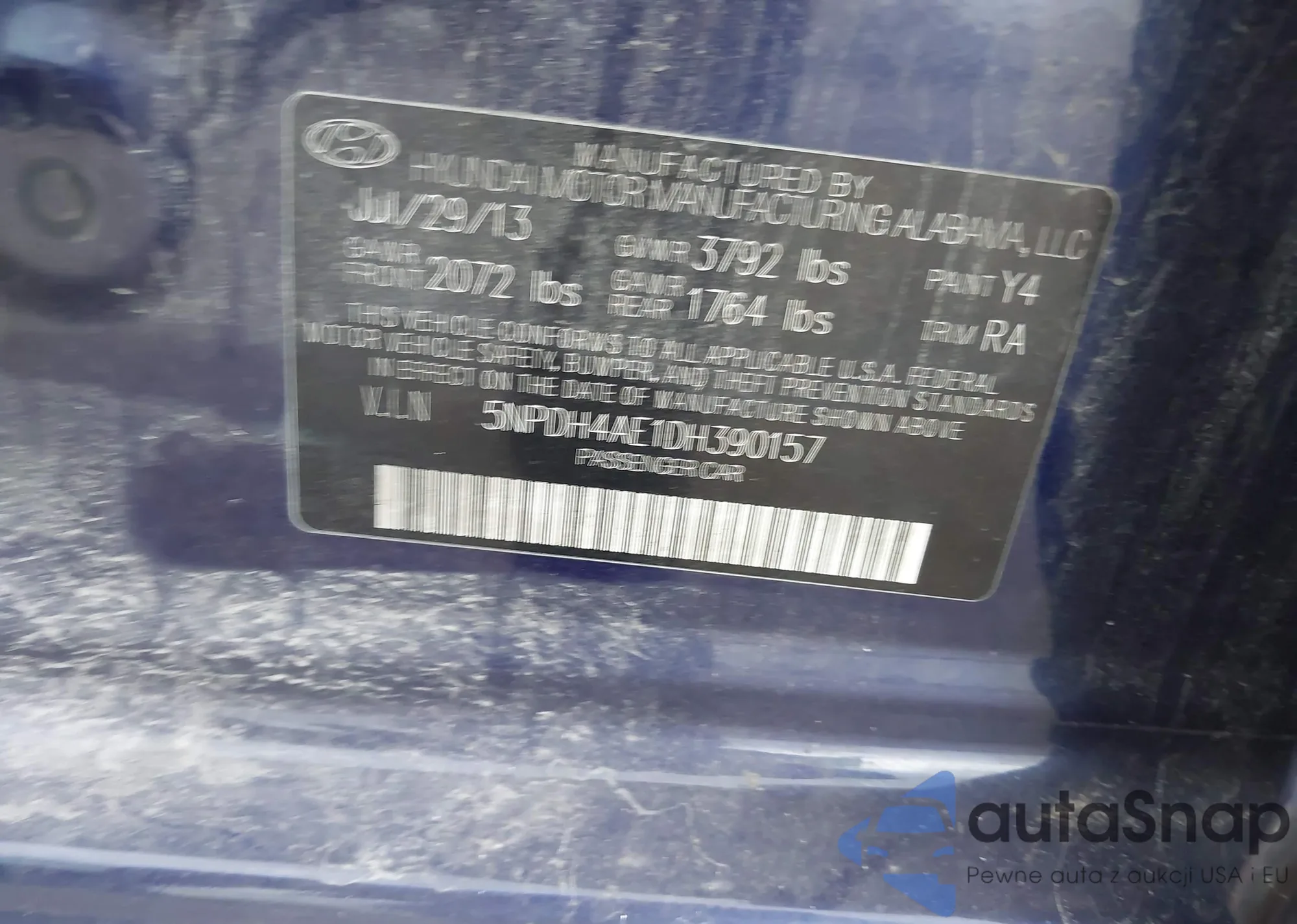 • VIN 5NPDH4AE1DH390157