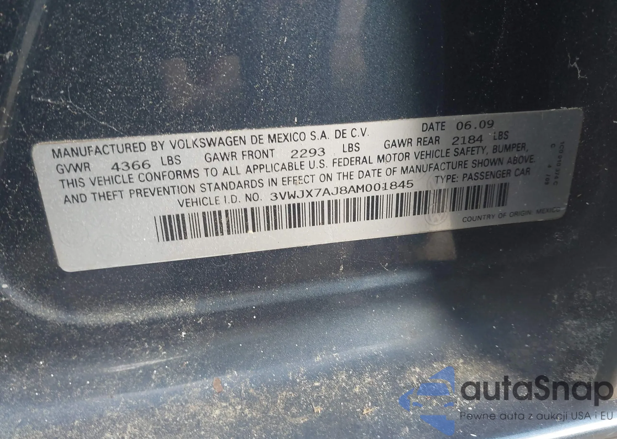 • VIN 3VWJX7AJ8AM001845