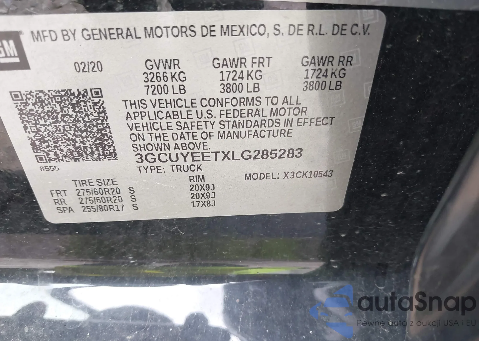 • VIN 3GCUYEETXLG285283