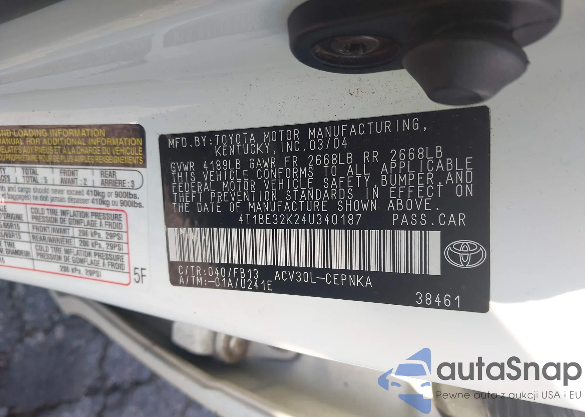 • VIN 4T1BE32K24U340187