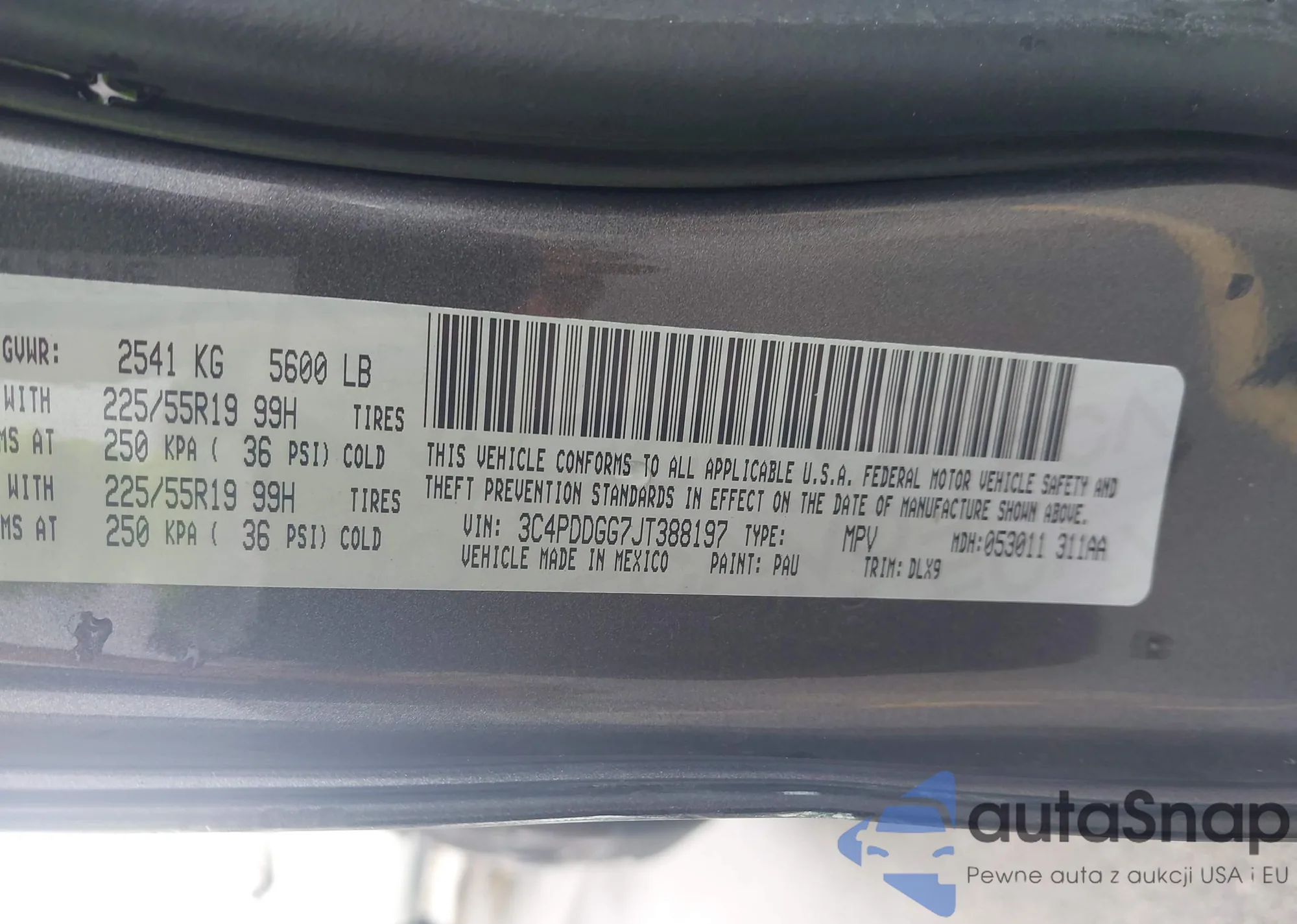 LOT: 42630854 VIN: 3C4PDDGG7JT388197