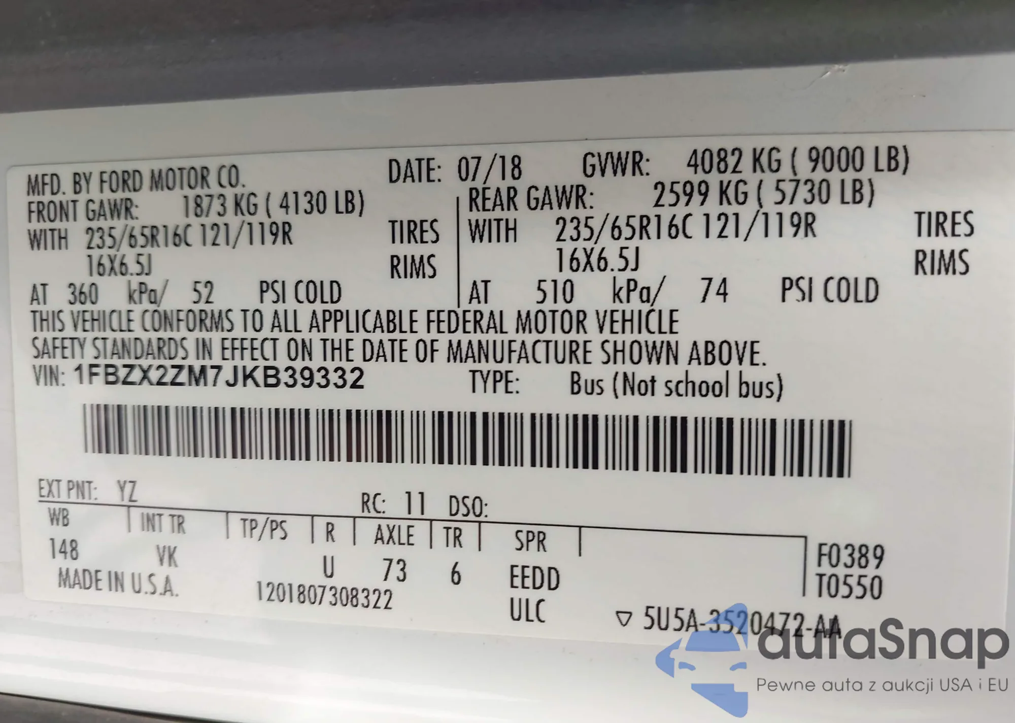 LOT: 42148273 VIN: 2HGFE1F73NH318592