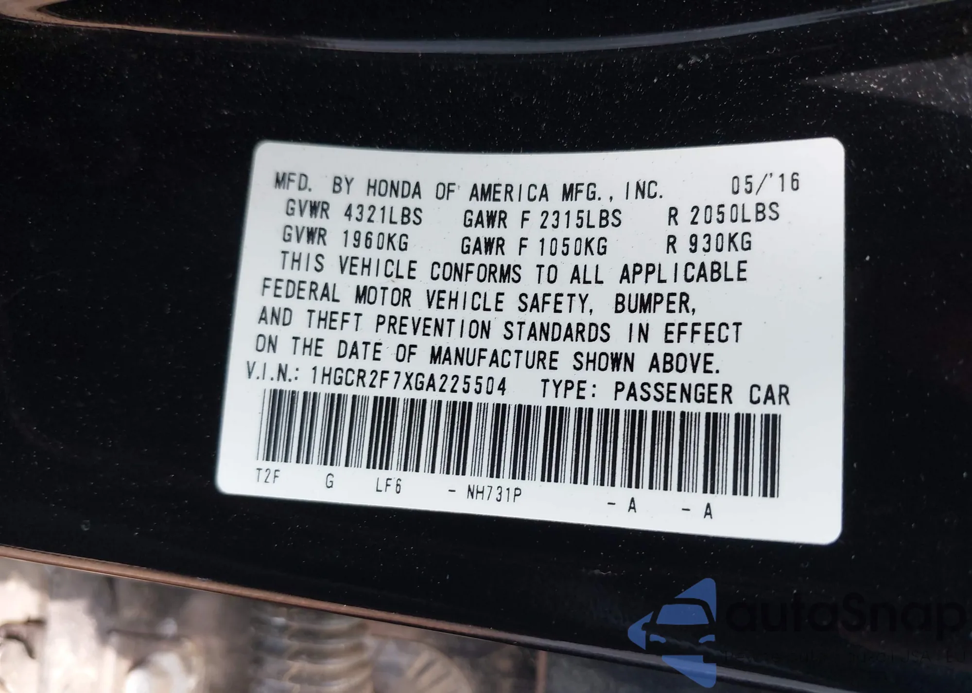 • VIN 1HGCR2F7XGA225504