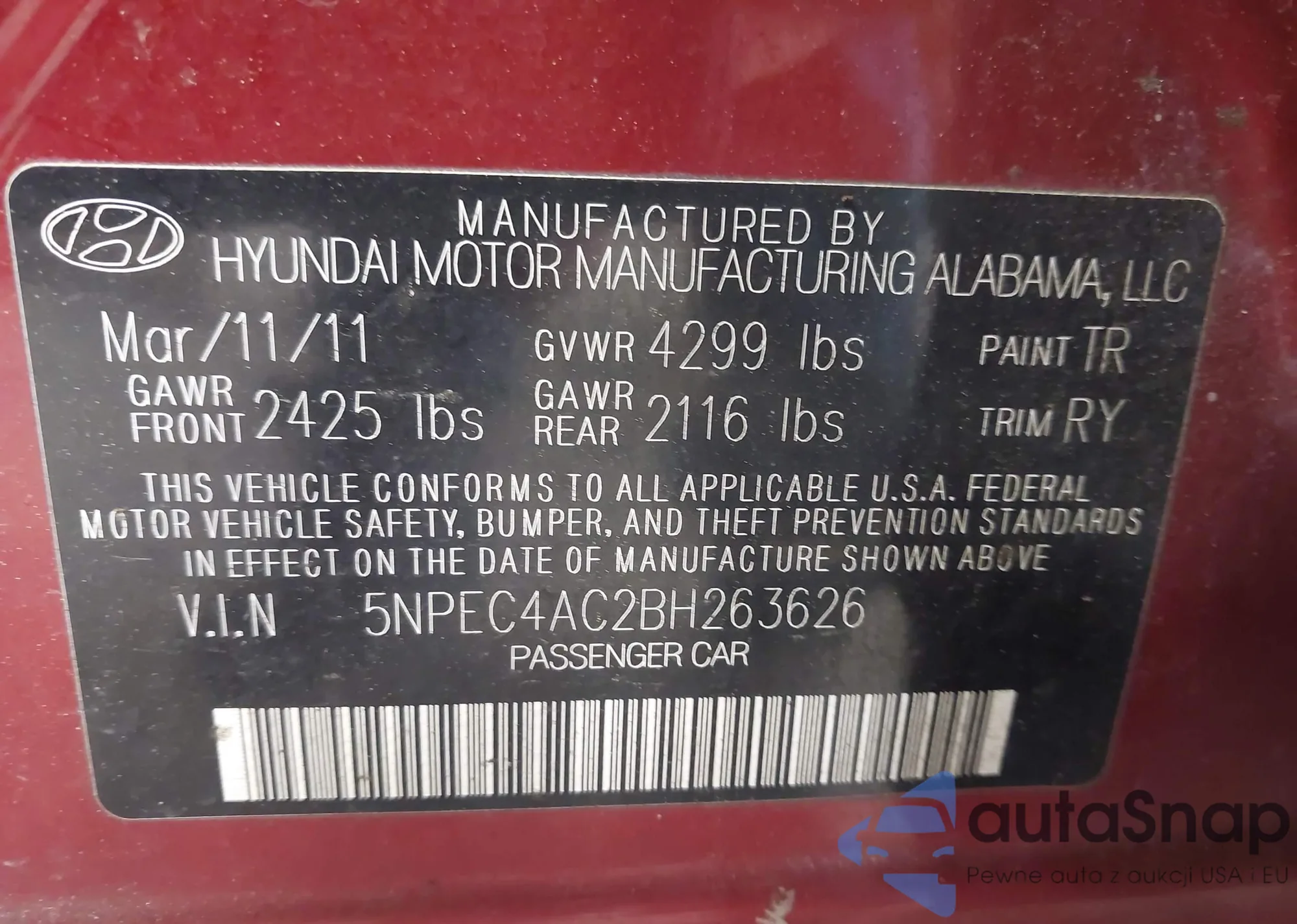 • VIN 5NPEC4AC2BH263626